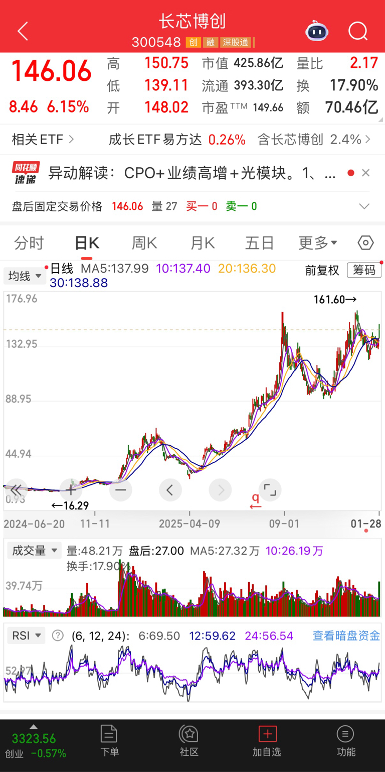 $东方通信(SH600776)$ #强势机会# #炒股日记# 东方通信投资长芯博创,赚麻了,股价从十几元涨到了最高一百多元,十多倍收益。东方通信4季度减持长芯博创2 6 0多万股,套现近3亿元,计入公允价值和总利润。