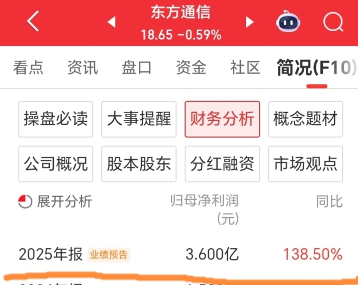$东方通信(SH600776)$ #收盘点评# 风险提示,利空:东方通信第四季度严重亏损。三季报3.64亿,年报仅3.6亿,第四季度白干了。卖了300多万股长芯博创获利3亿多,居然填不了这窟窿。全年扣非净利润亏损1.3亿元。