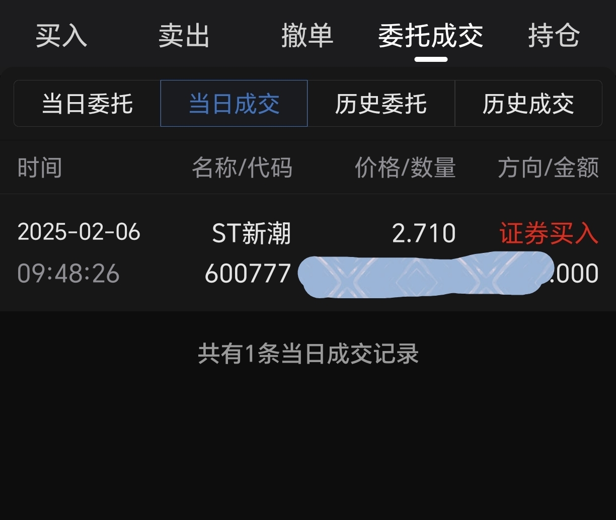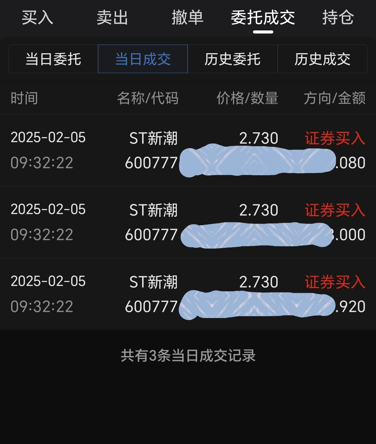 $ST新潮(SH600777)$ 看看这成交,估计我这一单,收了几十个散友的货。可见筹码之珍贵。