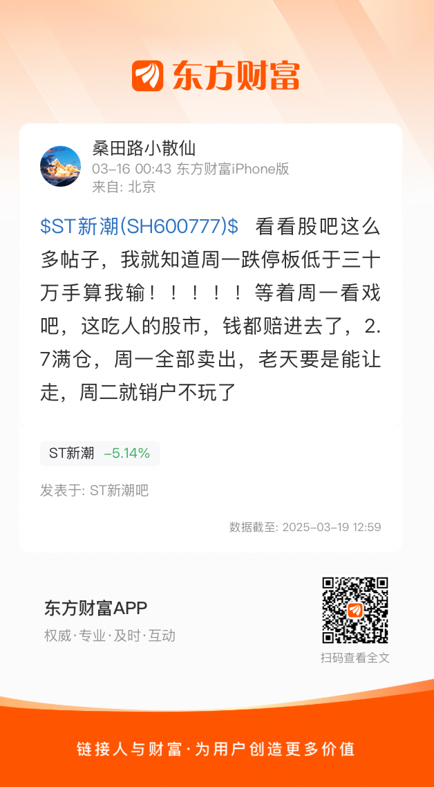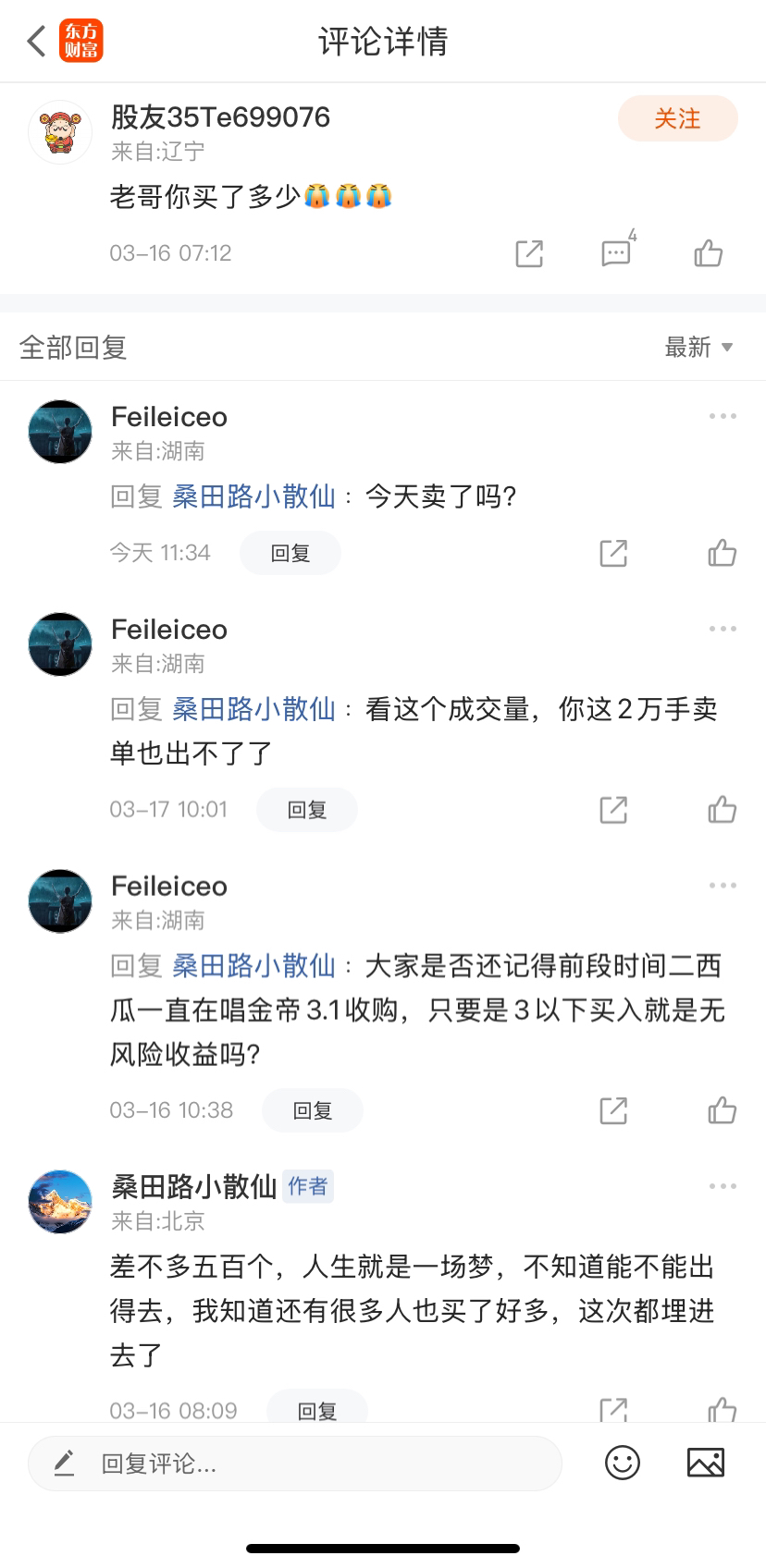 温馨提示: 1.根据《证券法》规定,禁止编造、传播虚假信息或者误导性信息,扰乱证券市场;2.用户在本社区发表的所有资料、言论等仅代表个人观点,与本网站立场无关,不对您构成任何投资建议。用户应基于自己的独立判断,自行决定证券投资并承担相应风险。《东方财富社区管理规定》