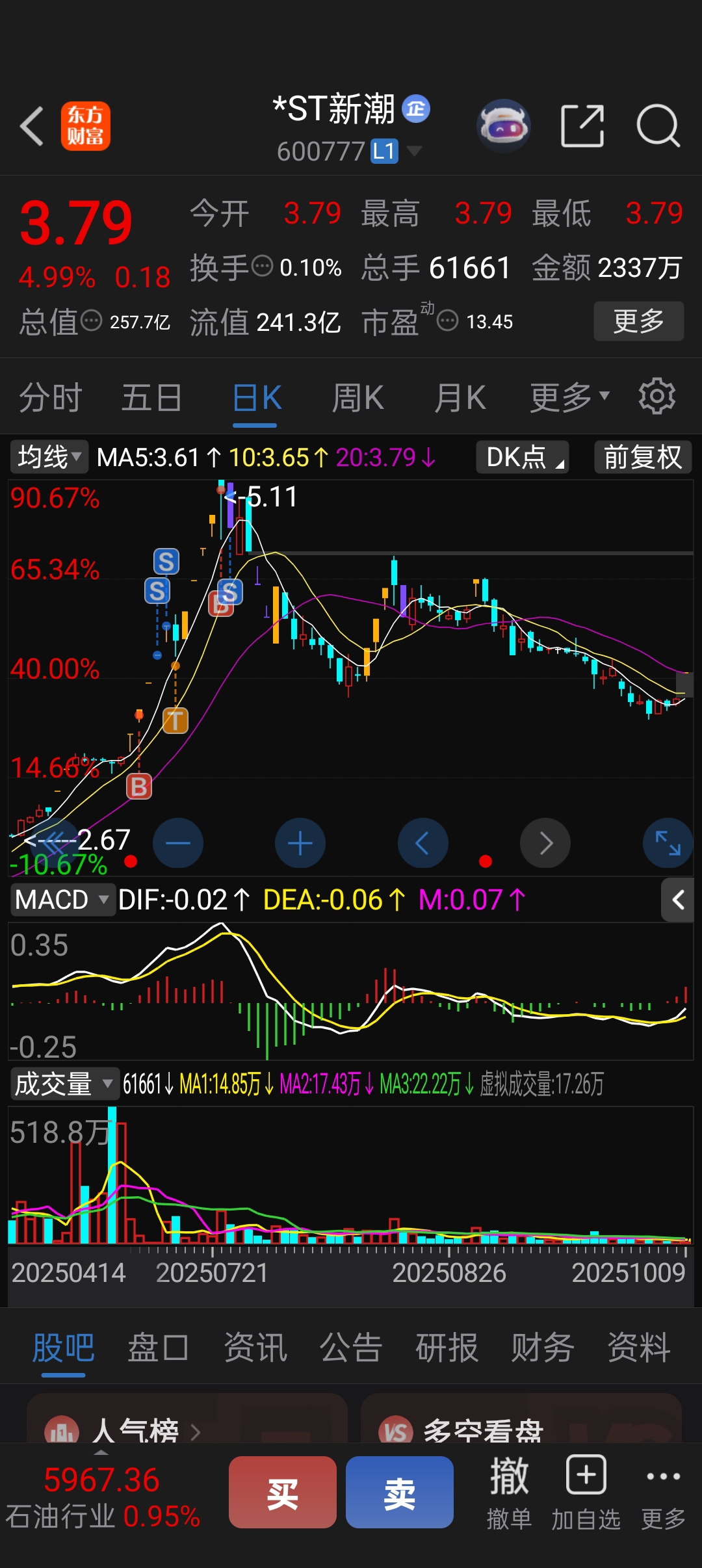 $*ST新潮(SH600777)$ 恭喜车上的,吃到一字板,还是挺怀念他的