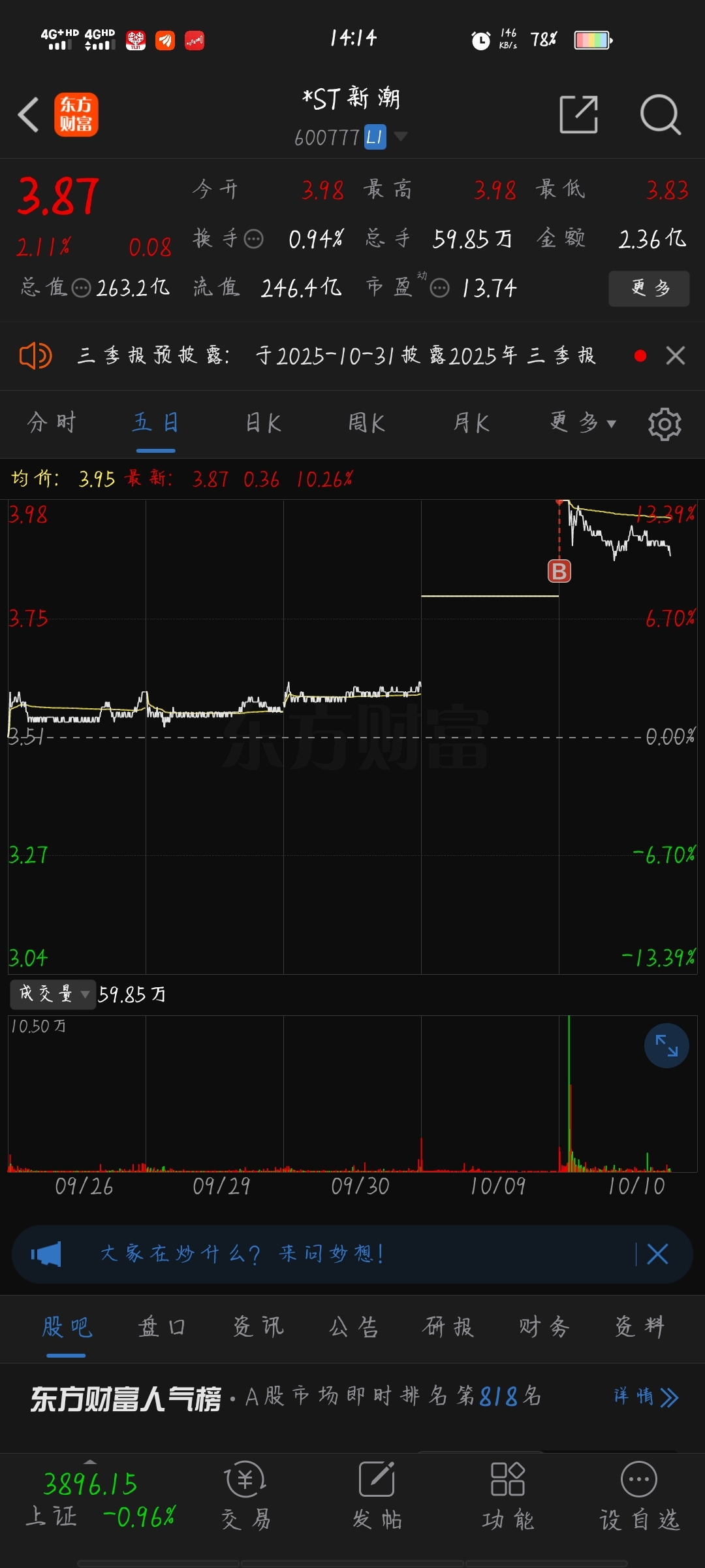 $*ST新潮(SH600777)$ 真是倒霉,次次打板次次被套,开盘就买到了,以为这次要捡到宝了,没想到又是套
