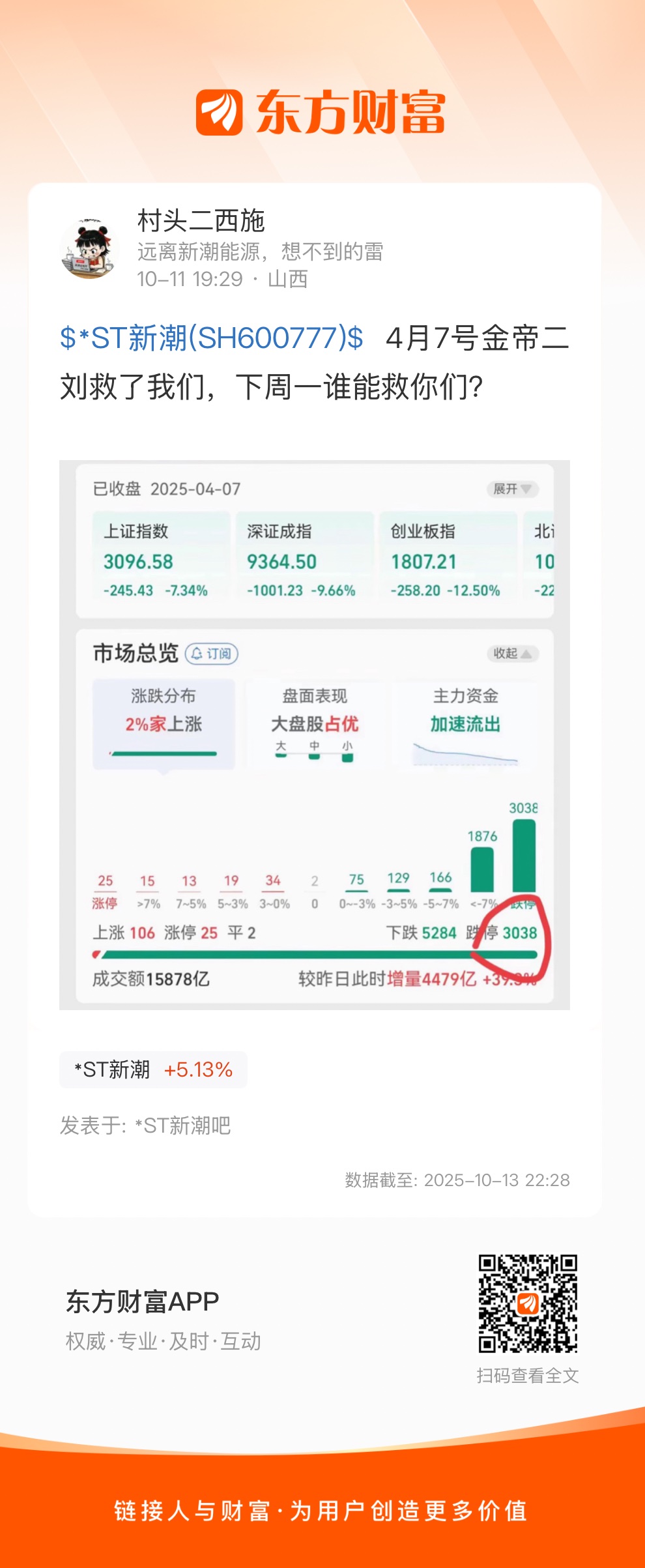 $*ST新潮(SH600777)$  4月7号金帝二刘救了我们,下周一谁能救你们?