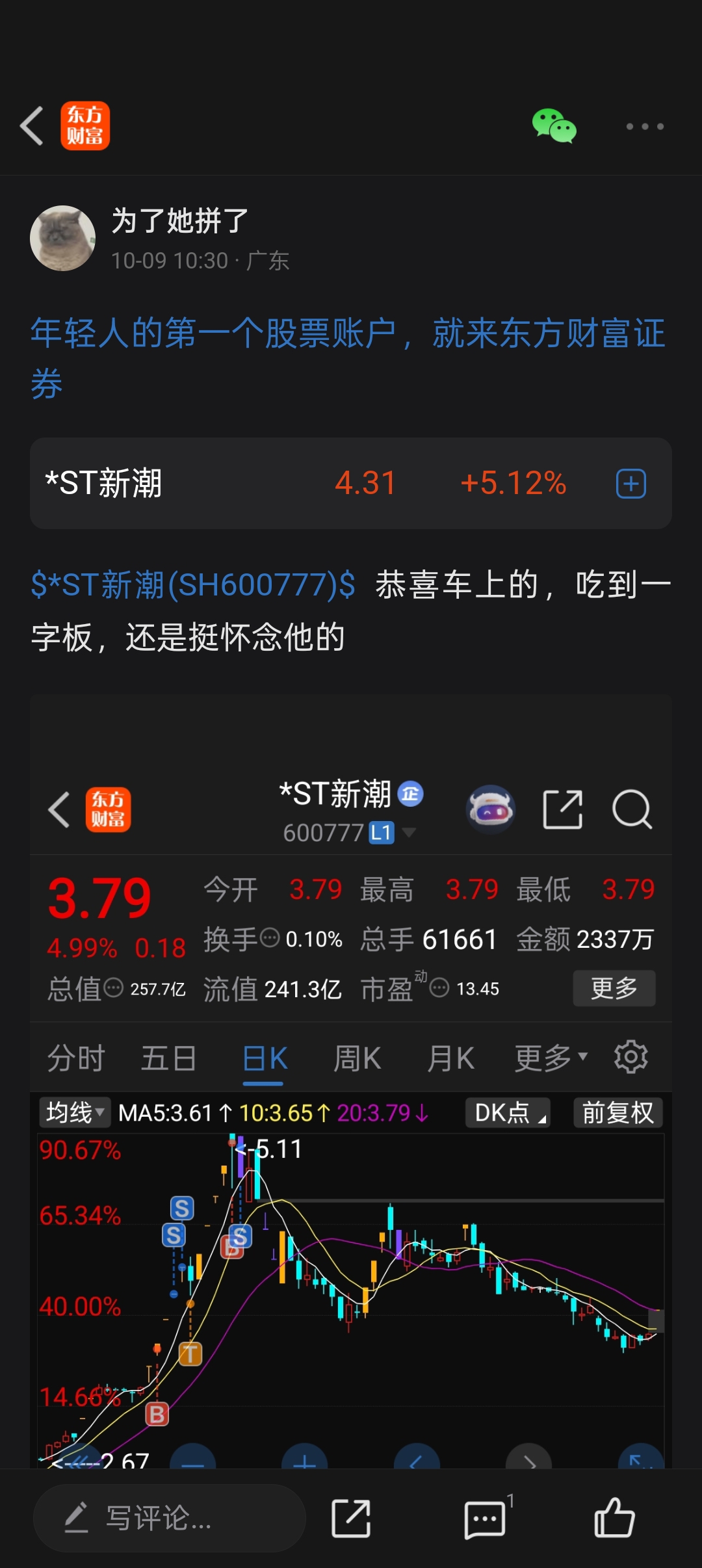 $*ST新潮(SH600777)$