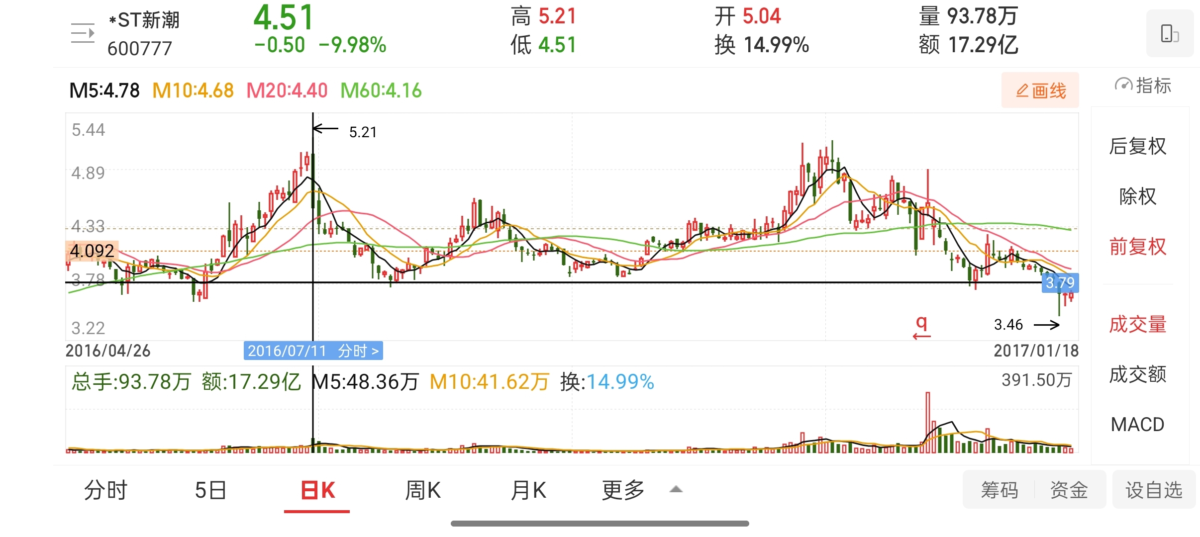 $*ST新潮(SH600777)$ 此图为2016年7-11月的走势图,和现在的盘面非常像,横盘长达十年之久,希望此次新潮一飞冲天,创历史新高