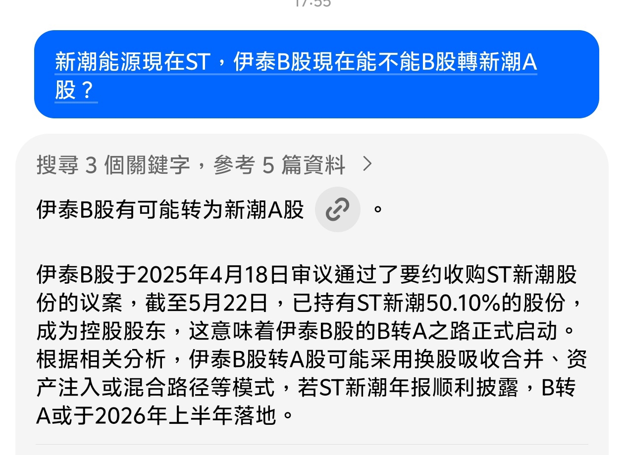 B股转A股,不光是换股,可能还要资产注入,伊泰准备大干。所以说伊泰在下一盘大棋。