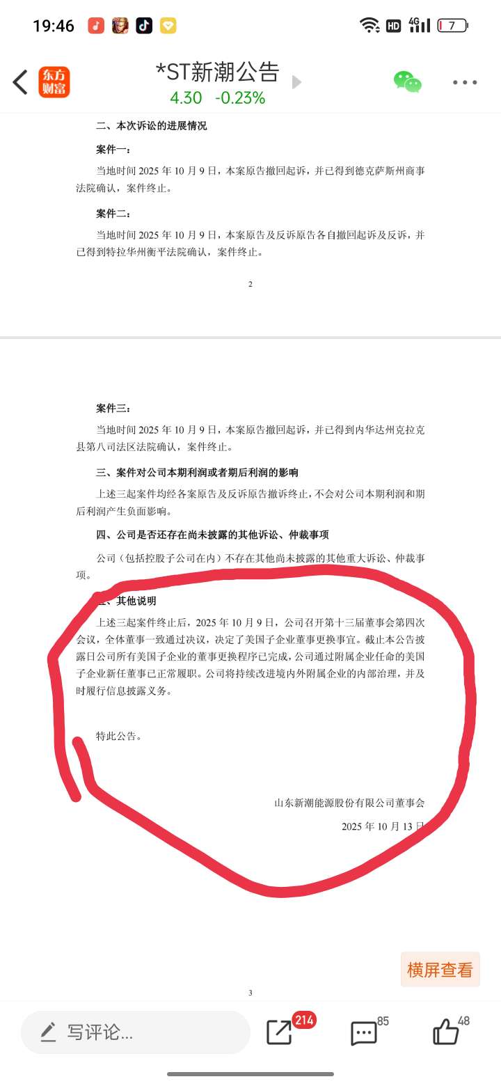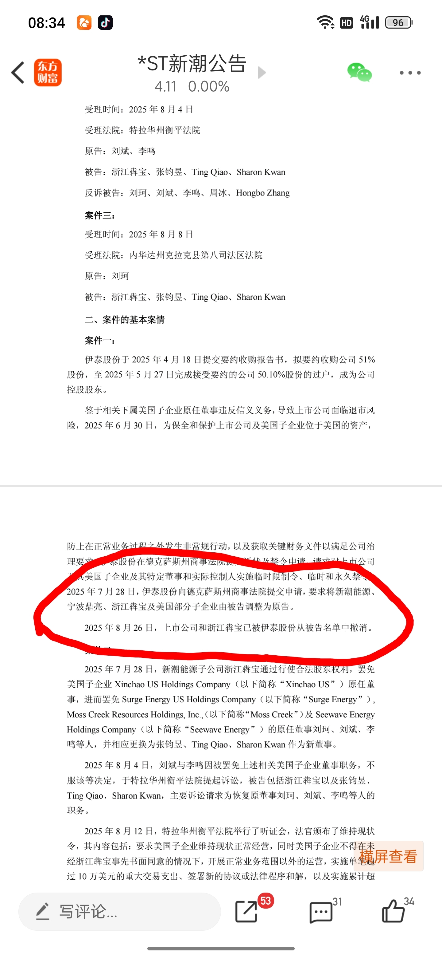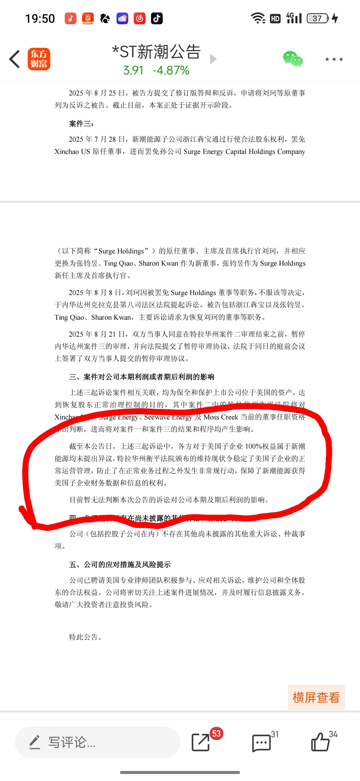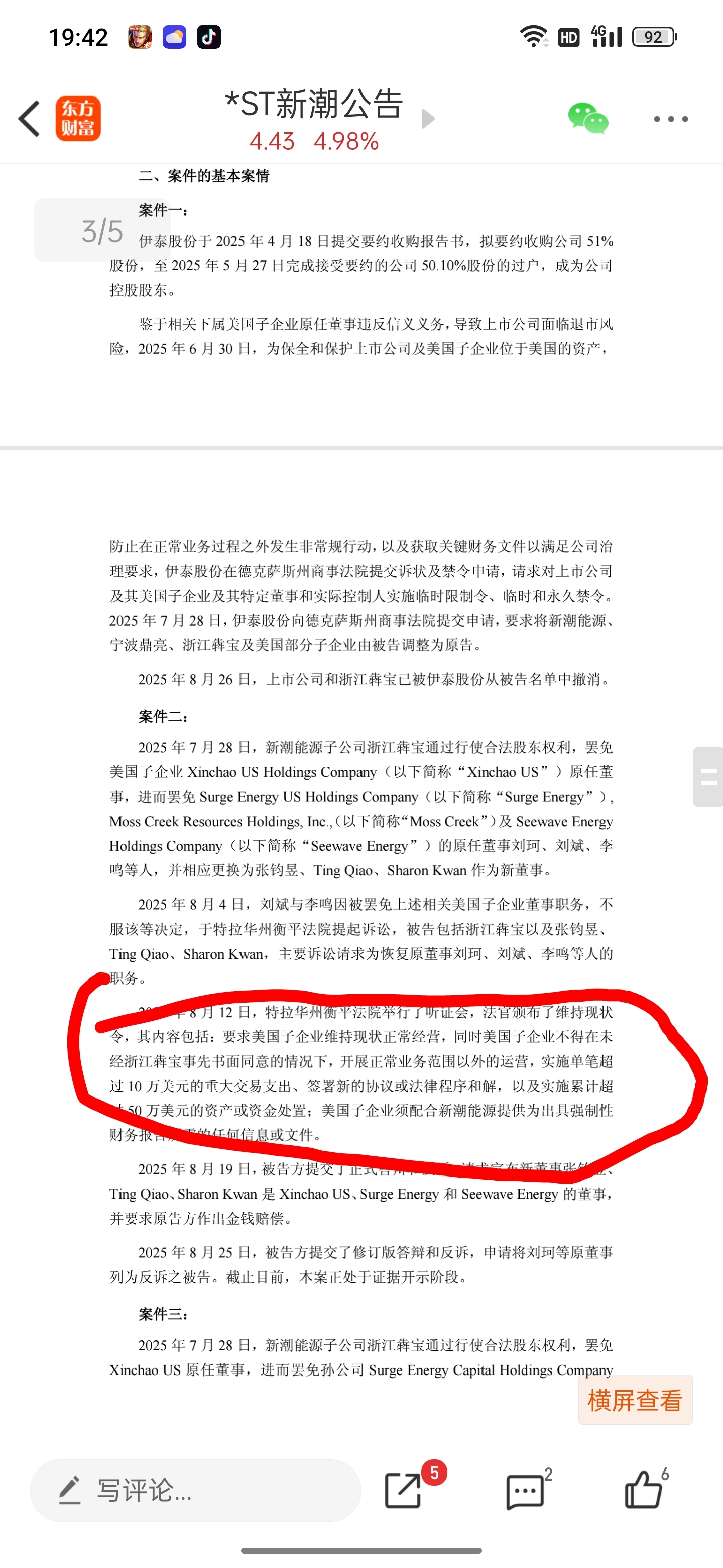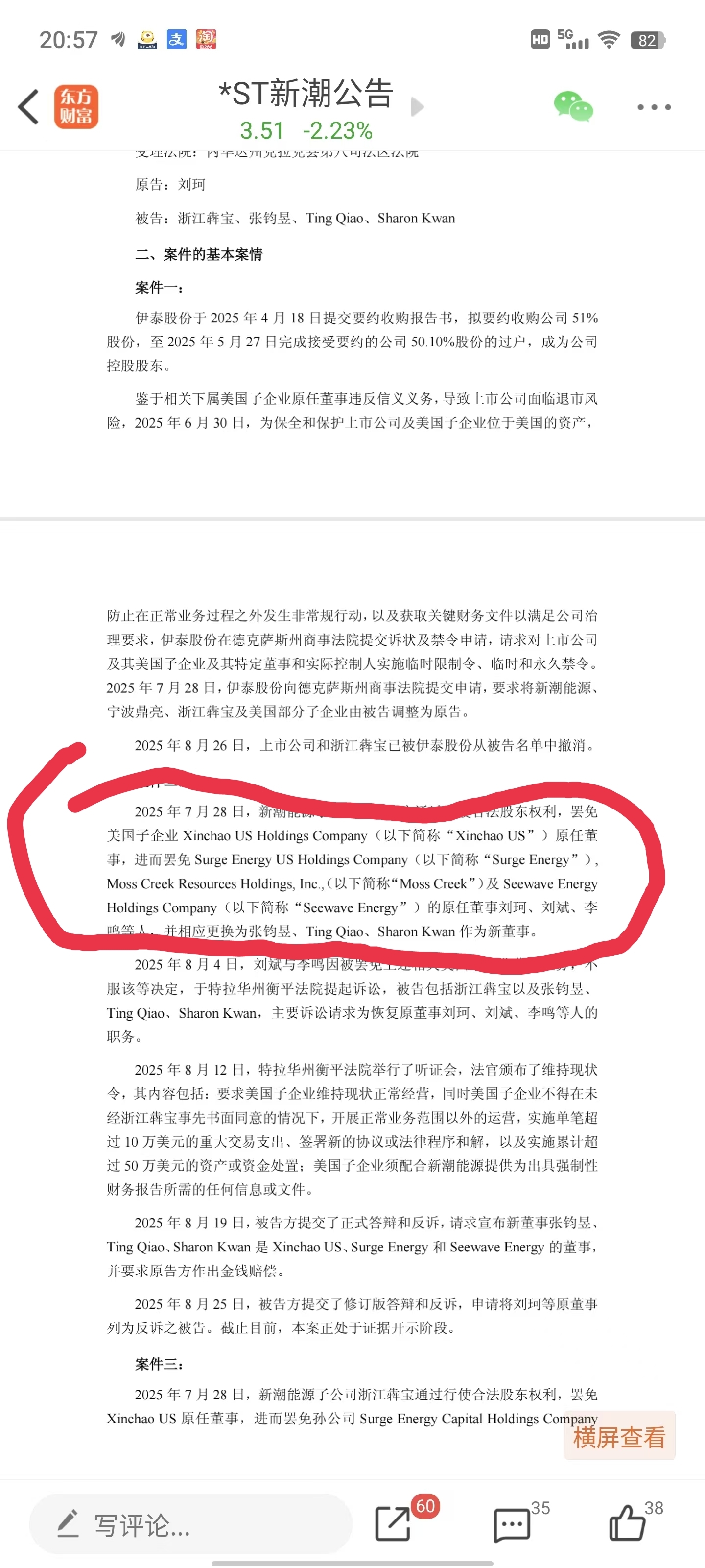 $*ST新潮(SH600777)$ 伊泰5月27完成要约过户,6.30号就开始起诉二刘新潮旗下所有子公司。