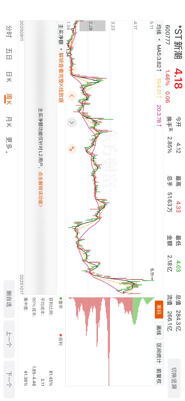 $*ST新潮(SH600777)$ 看新潮周线,那么多获利,主力跟公司跟散户是什么关系啊?抬轿子给散户送钱?