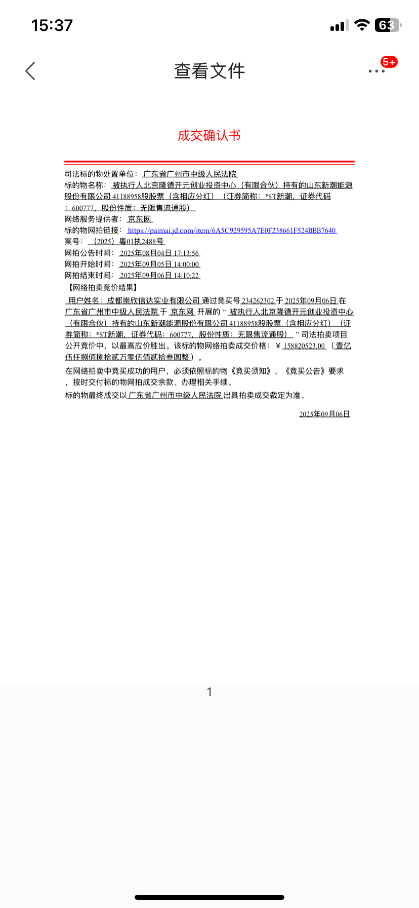 ST新潮最近的一次拍卖是2025年9月5日关于北京隆德开元(有限合伙)持有的公司股份的拍卖,本次拍卖核心是通过“以股偿债”了结广州农商行相关法院执行款,属于司法程序内的常规债务处置,所以如果中登结算那里已经没有质押那说明已经完成过户,广州农商银行案这件事情也处理完了,为后续的解除公司账户冻结以及海外资金回流创造了必要条件。