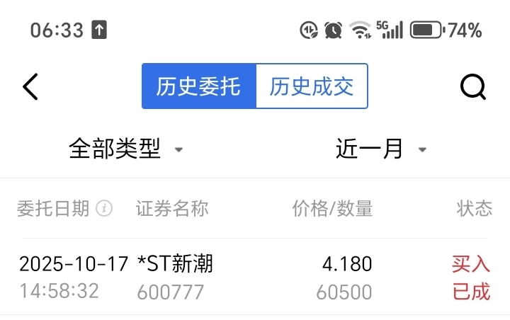 $*ST新潮(SH600777)$ 股市尾盘竞价买入成交6.05万股,星期一会不会亏死...