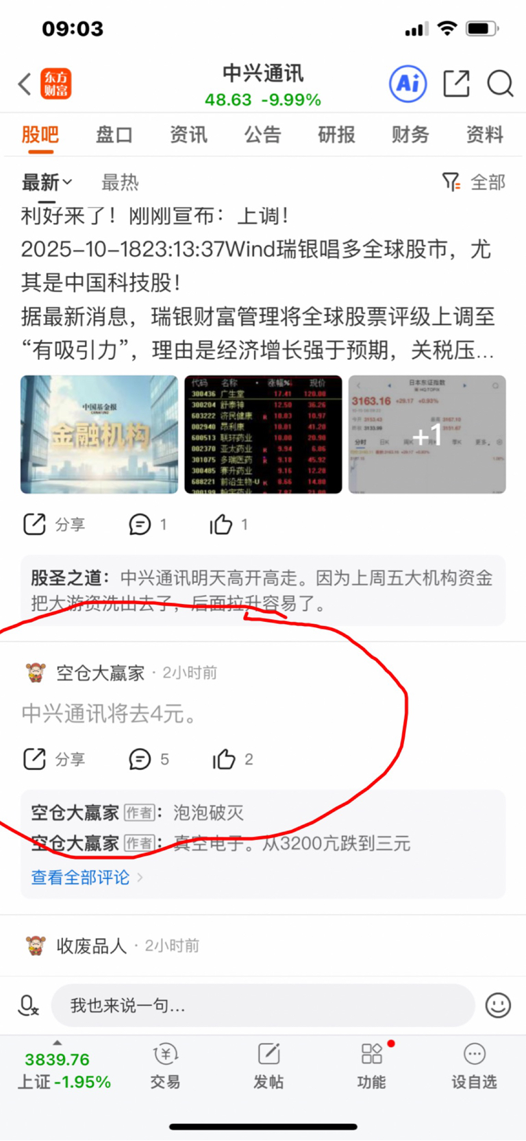 现在各股吧旡脑空,已经丧心病狂,比如《多头顶心杉》可悲,可笑。天天说跌停。