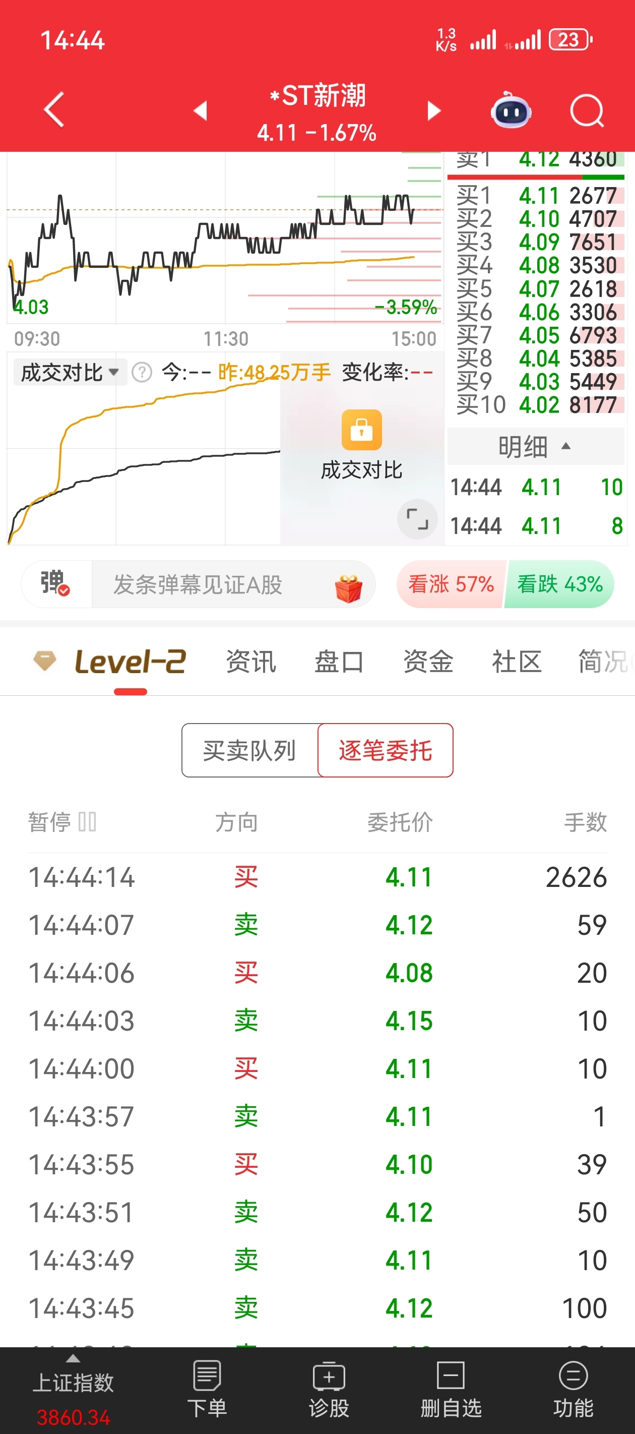$*ST新潮(SH600777)$ 二刘进了