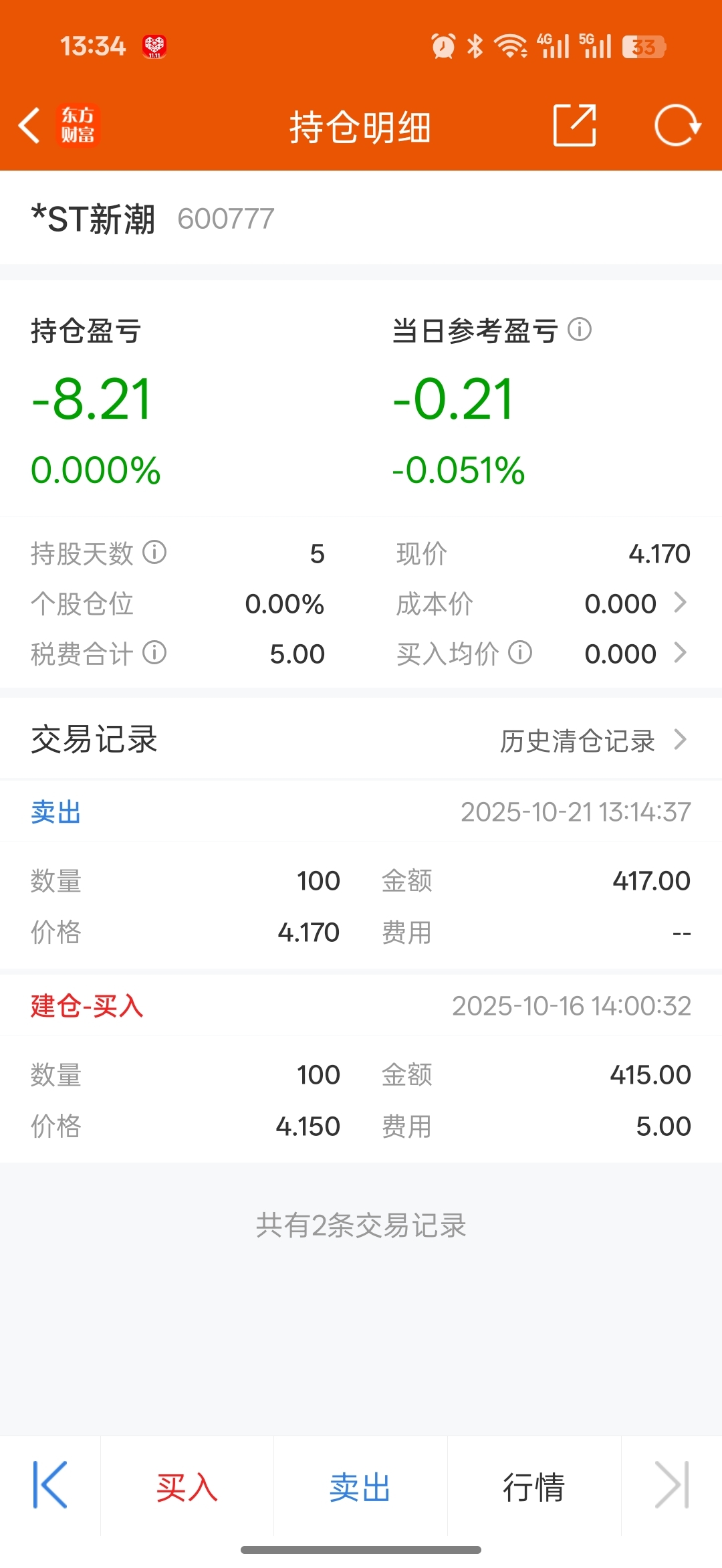 $*ST新笔记:这个手续费不应该是5元吗?怎么-8元潮(SH600777)$