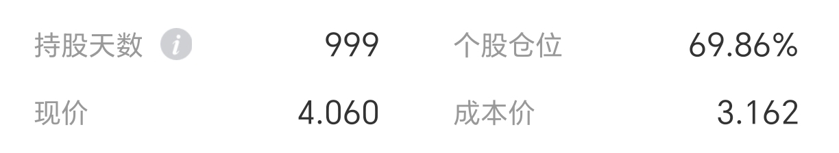 我盯盘,是为了盯着它是否补缺3.98元,以便及时把仓位重新满上来。这段时间它持续的狂砸,我将持仓占比低于70%了,降下了近20个百分点,一来减点亏,顺便在外面打打野,基本上把它跌去的利润扳回来了。 //@豪赌永远与您同在 :我一说话,它就恼羞成怒狗急跳墙了//@豪赌永远与您同在 :很好,收盘兑现预期效果。下周60日线上下可以大胆加仓了,可能会破一下4元整数关,补完3.98的缺口,机会稍纵即逝,备好子弹过期不候。