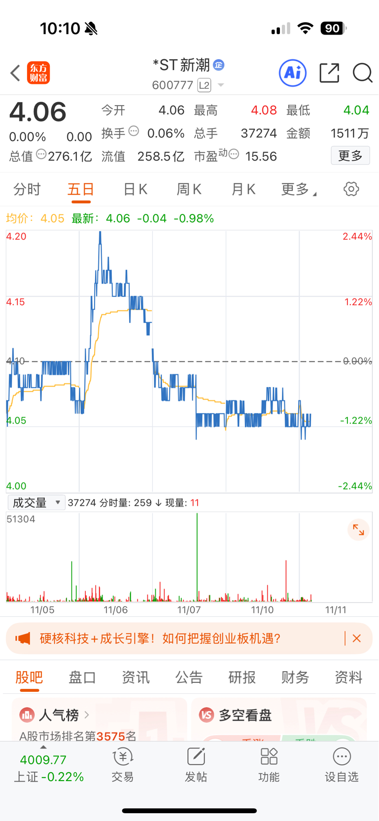 $*ST新潮(SH600777)$ 五日线也给你竖个中指