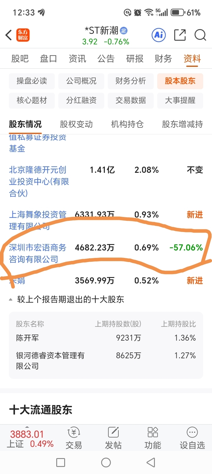 $*ST新潮(SH600777)$ 如果这个人要清仓,大家说说要多久,会不会有大户接...