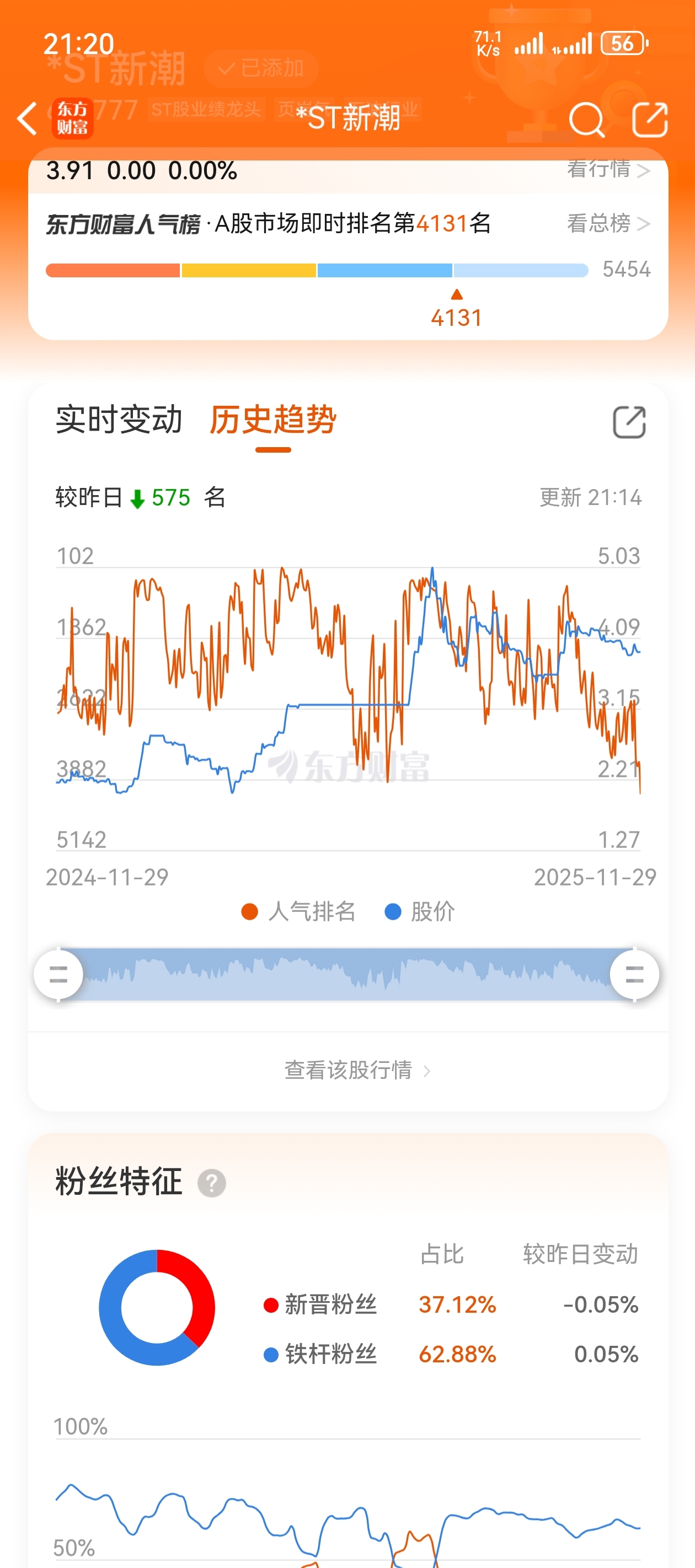 $*ST新潮(SH600777)$ 人气1年来最低,下周一3.86再补些。