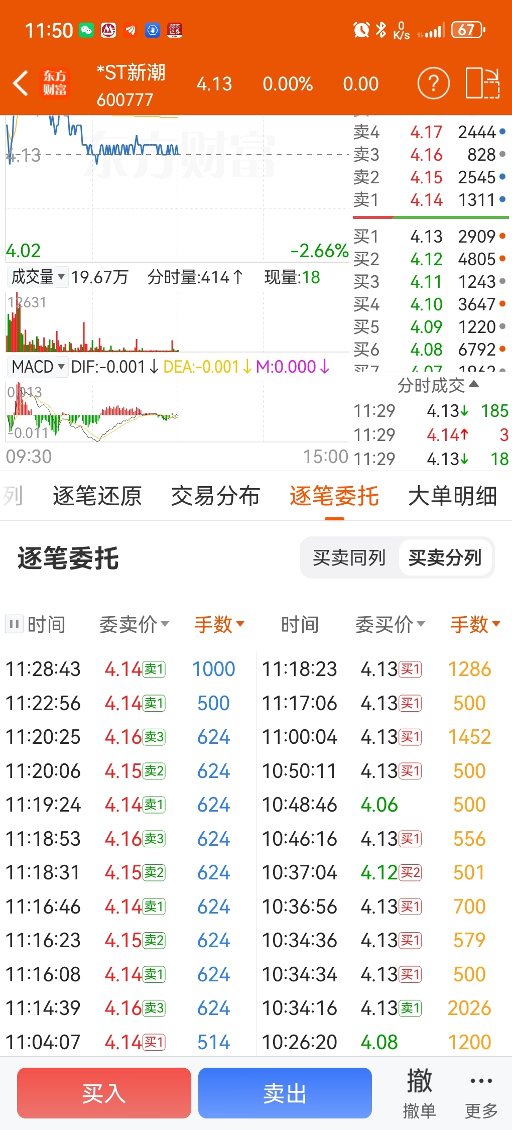 $*ST新潮(SH600777)$ 全是上下挂单,等什么时候主动买入才能跟着买。