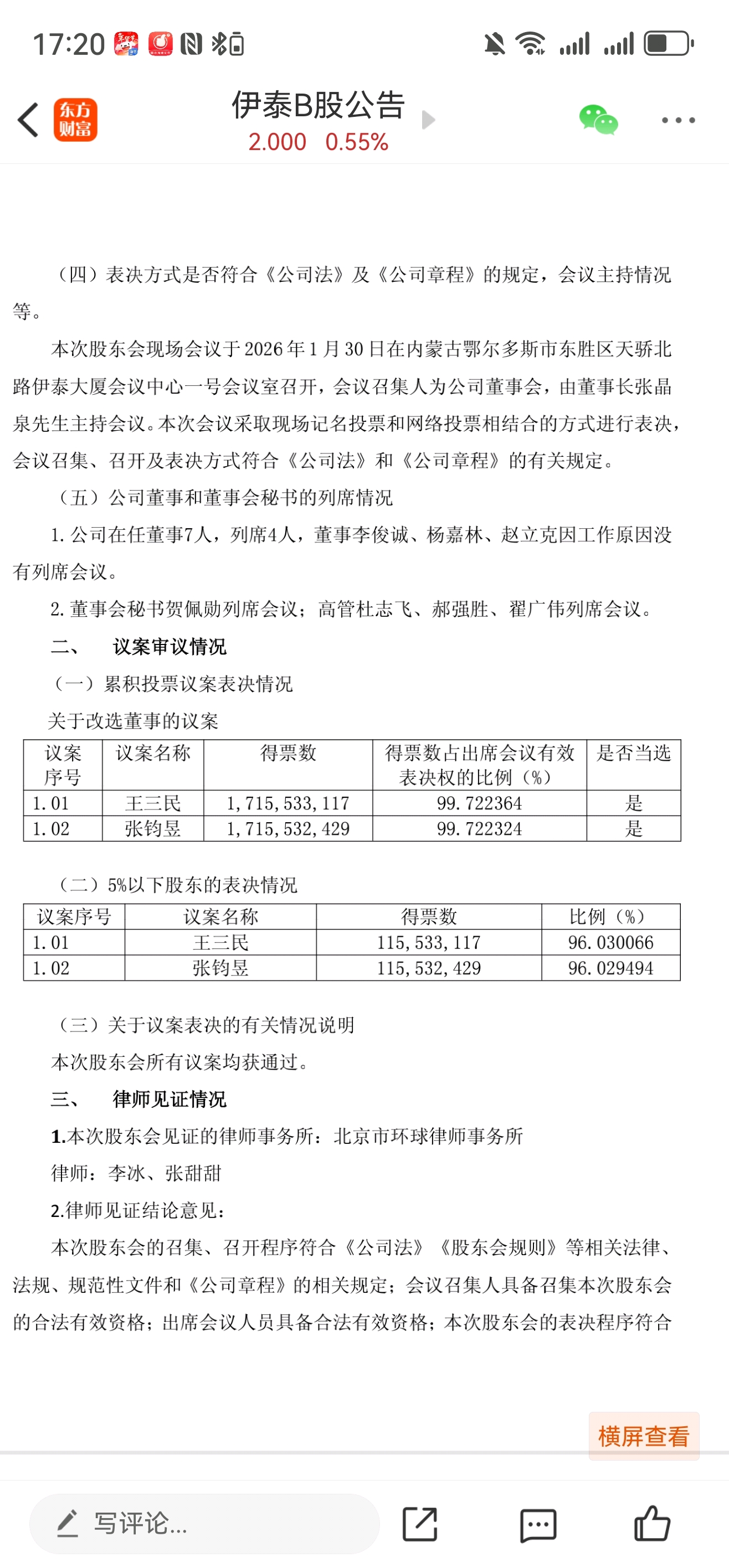 $*ST新潮(SH600777)$ 新潮董事长小张今天当选伊泰董事