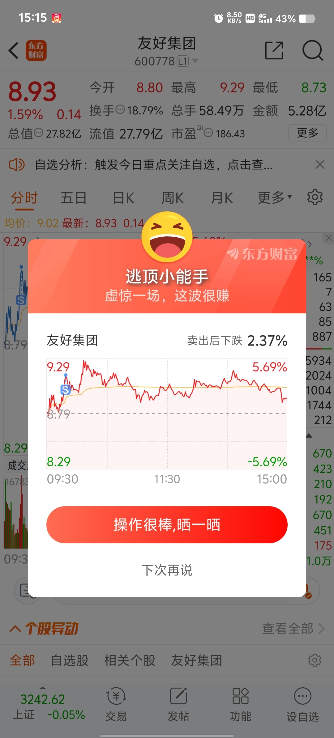 昨天追高进的,赚了一条荷花钱赶紧跑