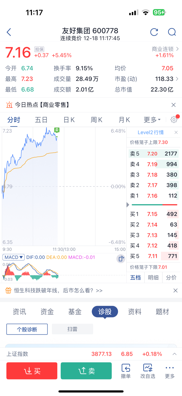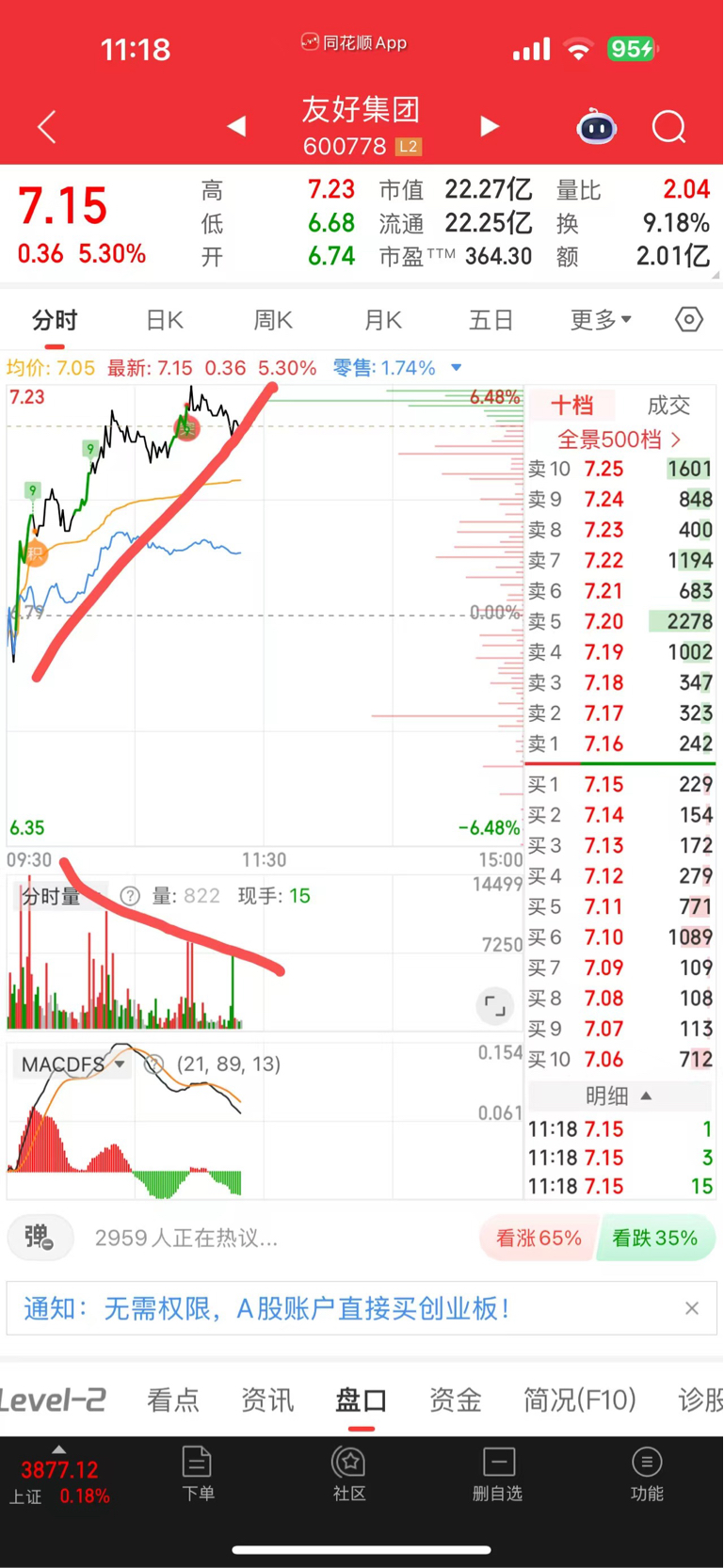 $友好集团(SH600778)$ 量价开始走背离了 我先跑了 看下午或者明天有没有机会接回来