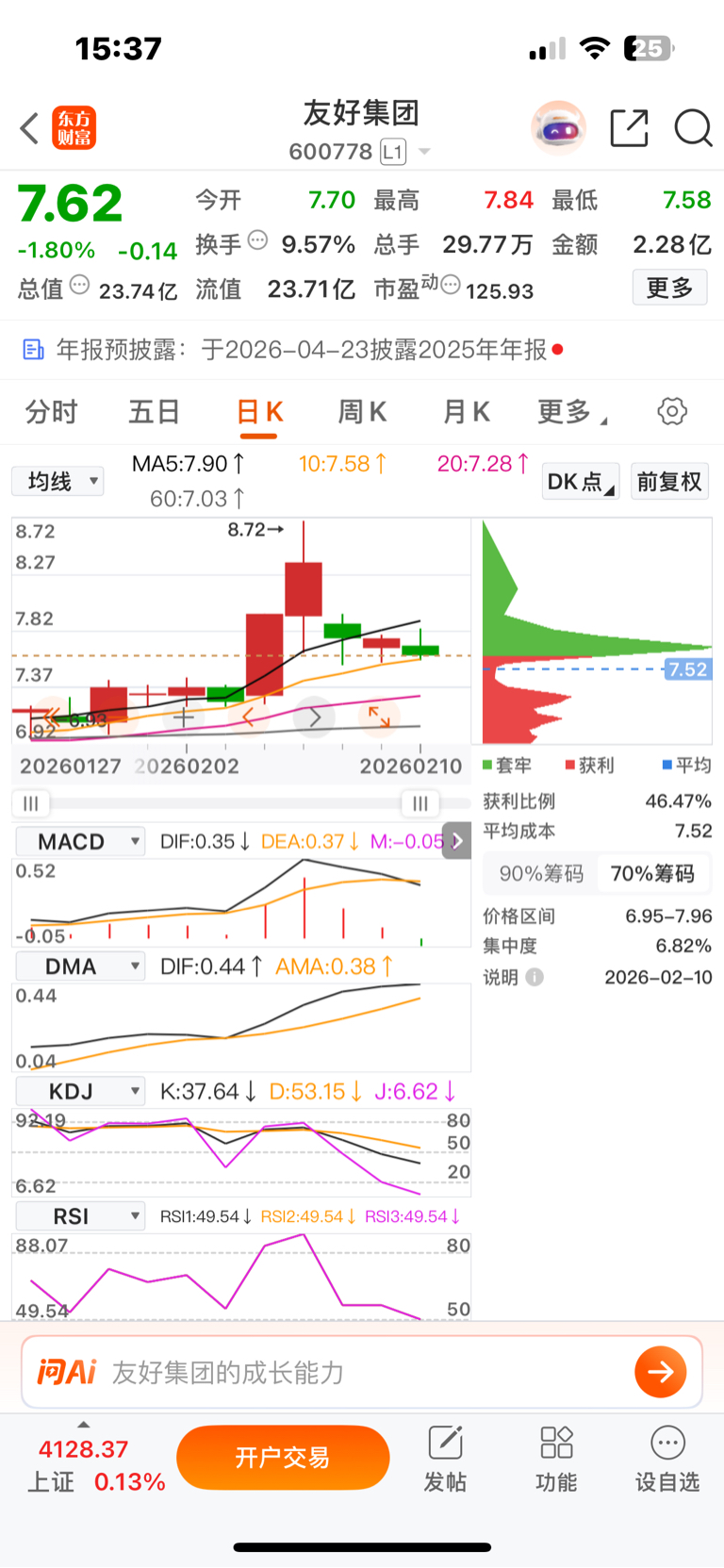 $友好集团(SH600778)$ 今天macd死叉,kdj小于20。rsi破50。买买买
