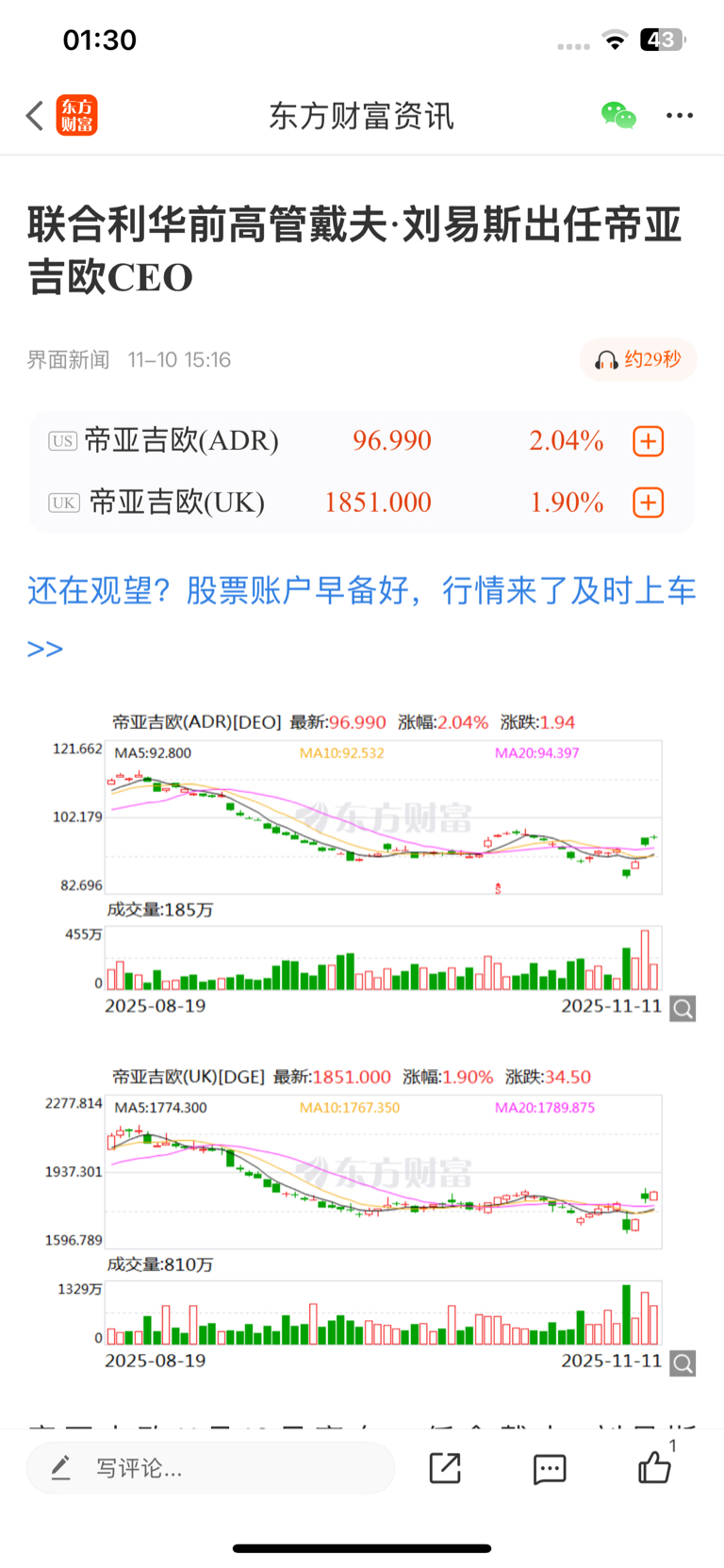 $水井坊(SH600779)$ $帝亚吉欧(ADR)(NYSE|DEO)$