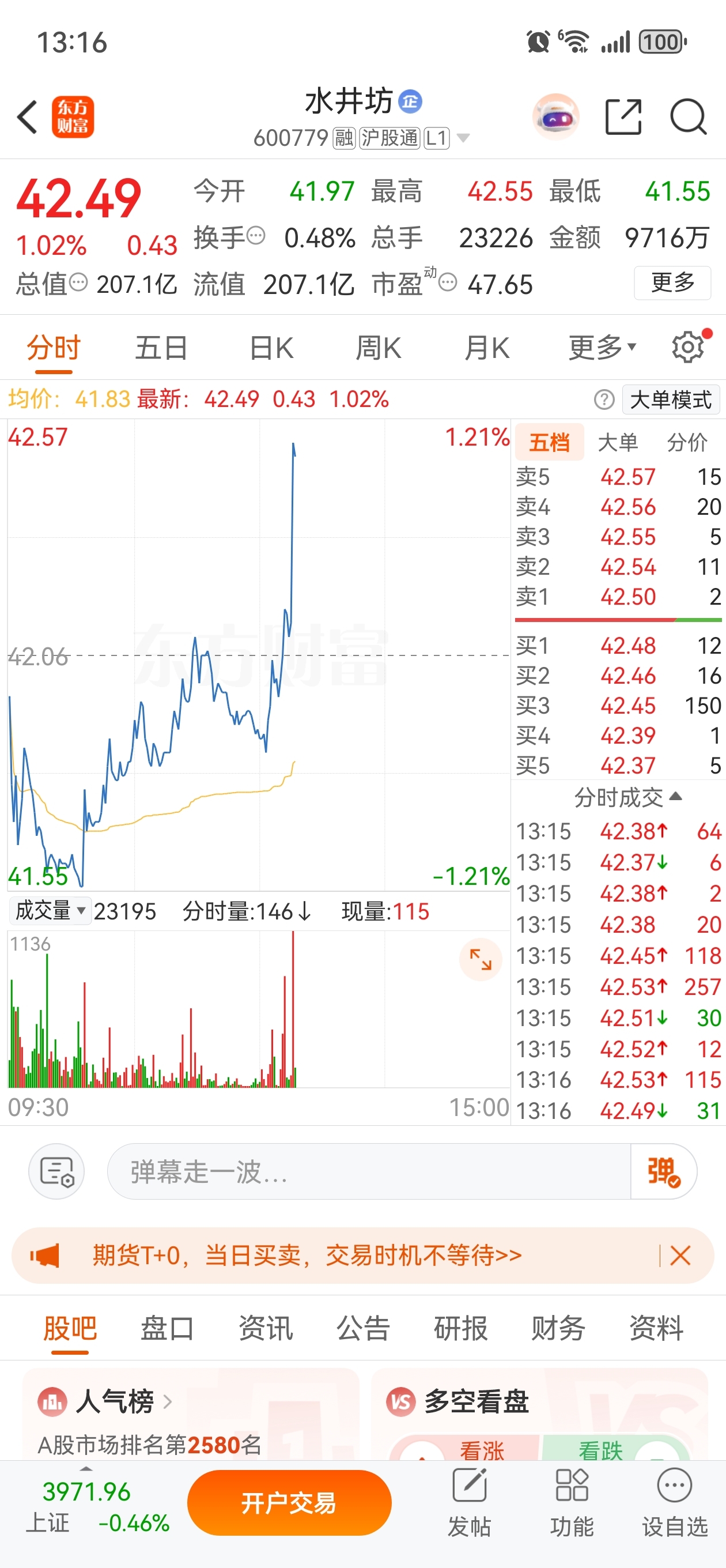 $水井坊(SH600779)$ 怎么突然撅起来了