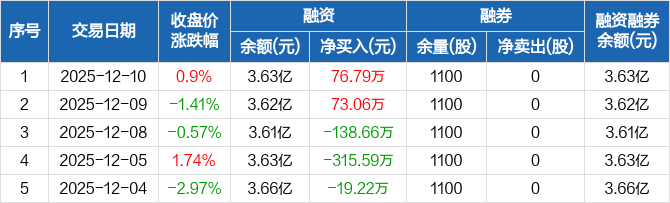 水井坊:融资净买入76.79万元,融资余额3.63亿元(12-10)