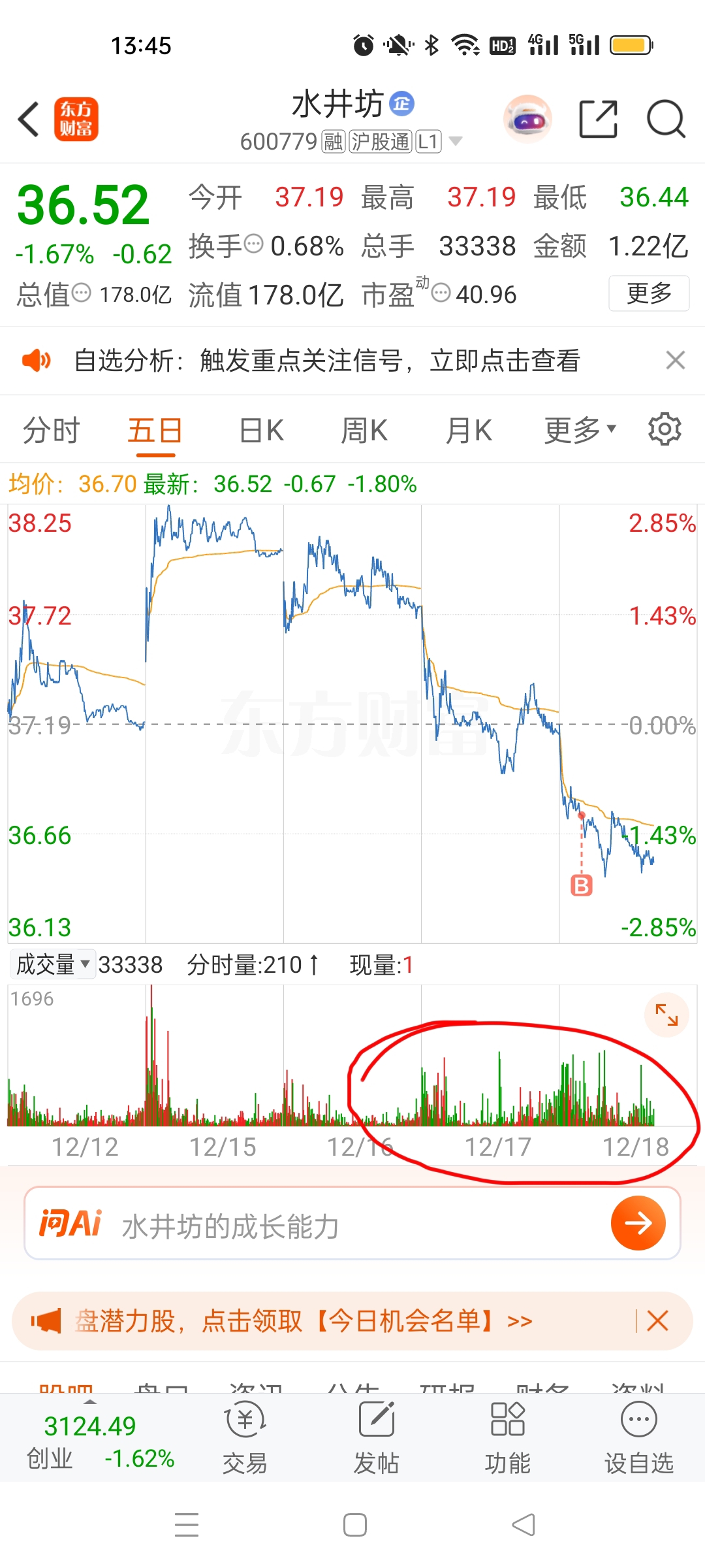$水井坊(SH600779)$ 这两天缺钱买孝帽子的这么多,我寻思得随个礼啊,所以我买了点股票
