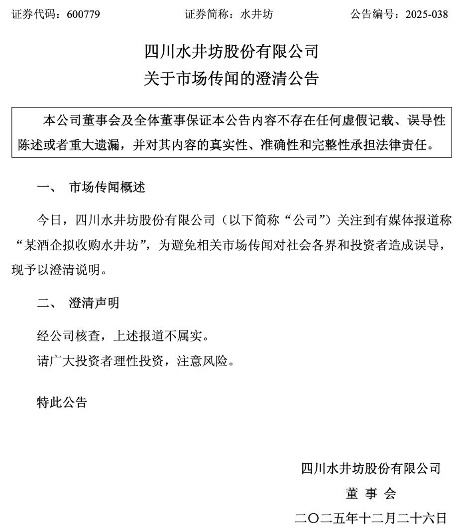 在中国市场,这一轮资产处置也引发了关于帝亚吉欧或将出售水井坊的猜测。尽管水井坊已于2025年12月26日发布公告,否认“某酒企拟收购水井坊”的相关传闻,但市场讨论并未完全平息。
