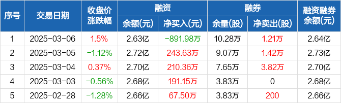 通宝能源:融资净偿还891.98万元,融资余额2.63亿元(03-06)