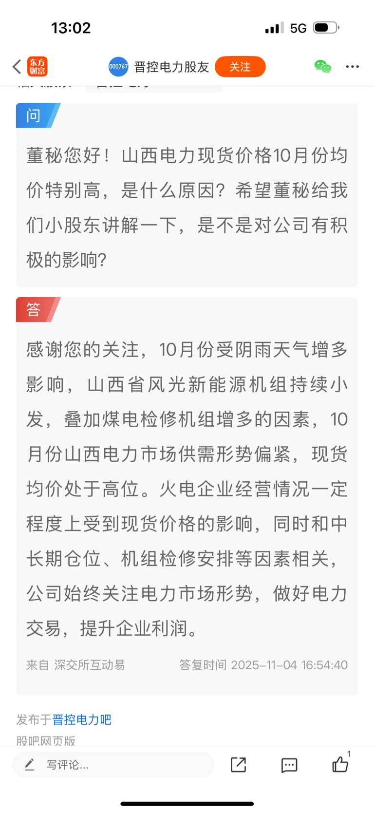 $通宝能源(SH600780)$ 10月山西电力现货涨价了呀,利好电网企业通宝能源