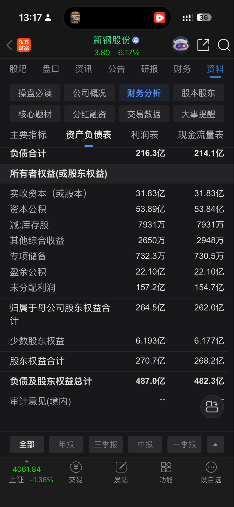 $新钢股份(SH600782)$ 未分配利润真的吗