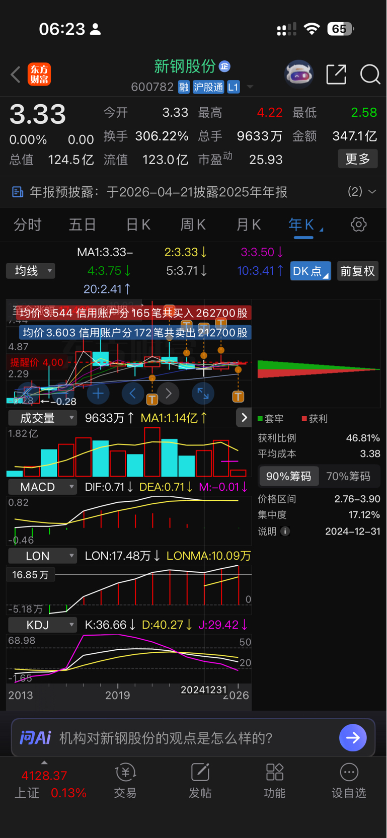 $新钢股份(SH600782)$ 今年再拿一年