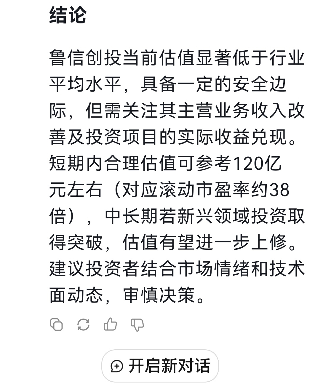 $鲁信创投(SH600783)$ 用deepseek评估下鲁信合理市值
