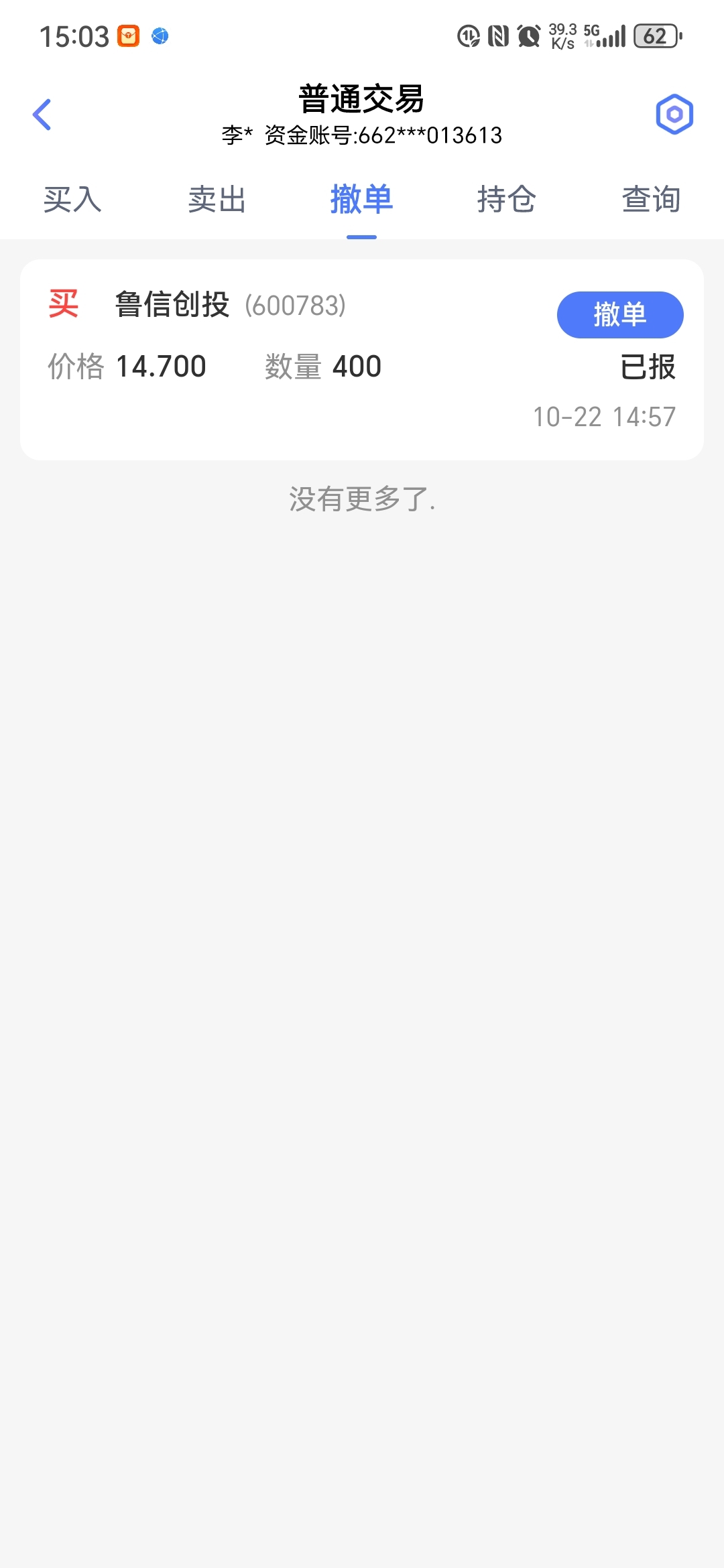 $鲁信创投(SH600783)$ 为什么我的没有成交