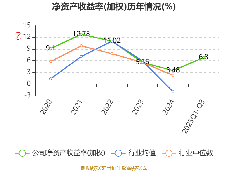 盈利能力方面, 2025年前三季度公司加权平均净资产收益率为6.8%,同比上升0.26个百分点。公司2025年前三季度投入资本回报率为4.56%,较上年同期下降0.06个百分点。