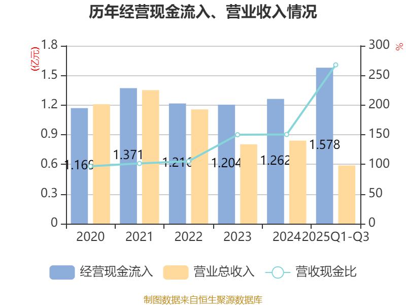 2025年前三季度,公司流动比率为10.84,速动比率为10.75。