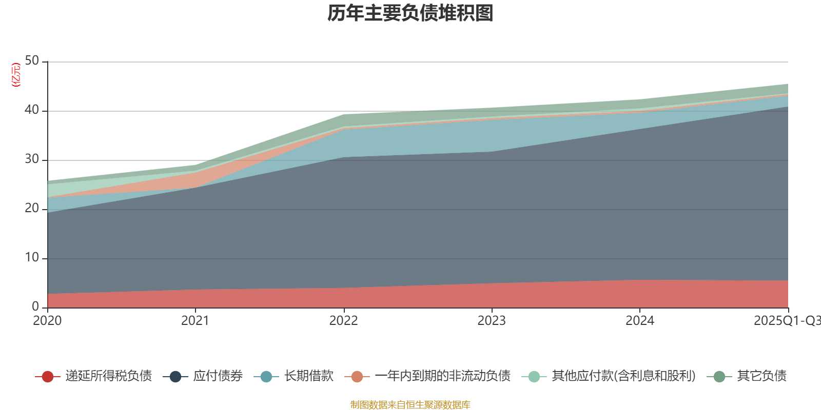 负债重大变化方面,截至2025年三季度末,公司应付债券较上年末增加15.44%,占公司总资产比重上升3.78个百分点;长期借款较上年末减少32.86%,占公司总资产比重下降1.31个百分点;其他应付款(含利息和股利)较上年末减少71.18%,占公司总资产比重下降0.42个百分点;递延所得税负债较上年末减少2.78%,占公司总资产比重下降0.41个百分点。