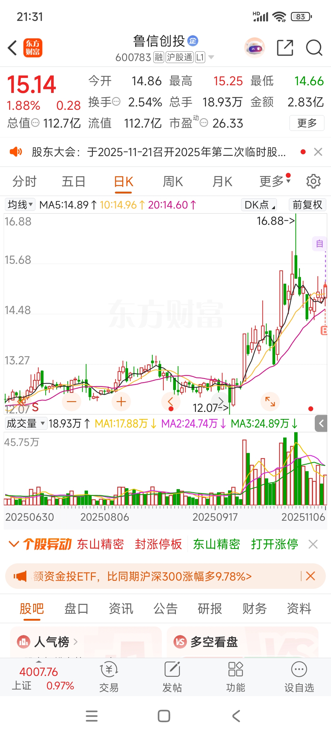$鲁信创投(SH600783)$ 今天进的,跟着兄弟们发财