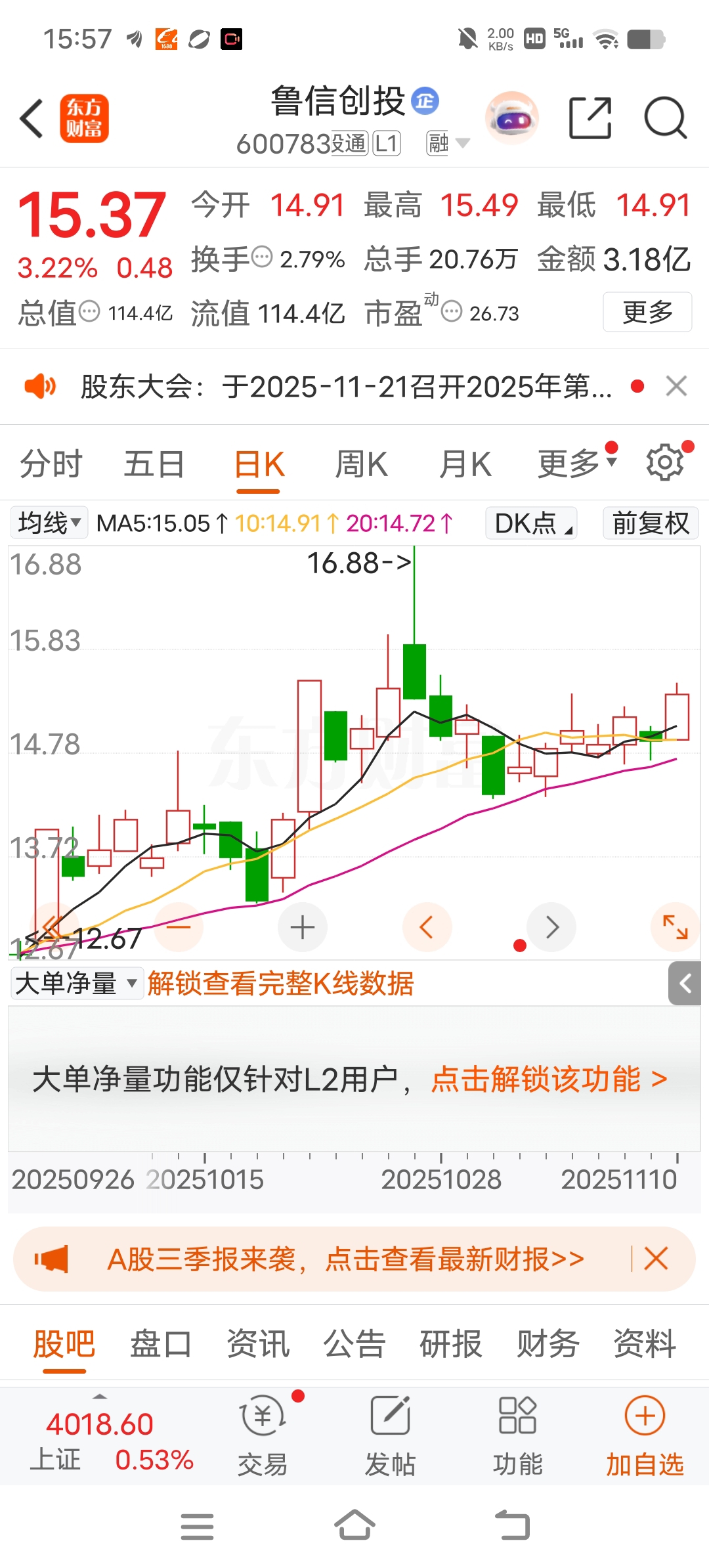 $鲁信创投(SH600783)$ 明天必再次跌到二十日线上,阳线后次日必跌。