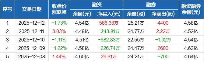 鲁信创投:融资净买入586.33万元,融资余额4.54亿元(12-12)