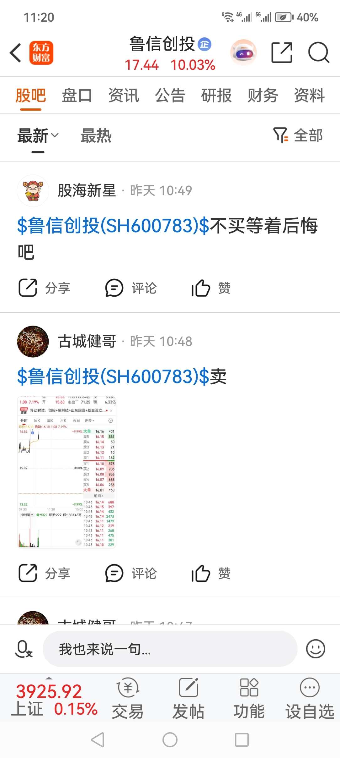 $鲁信创投(SH600783)$ 昨天就告诉大家赶紧买!听劝的都赚了!我没买是因为资金都被占用了没办法