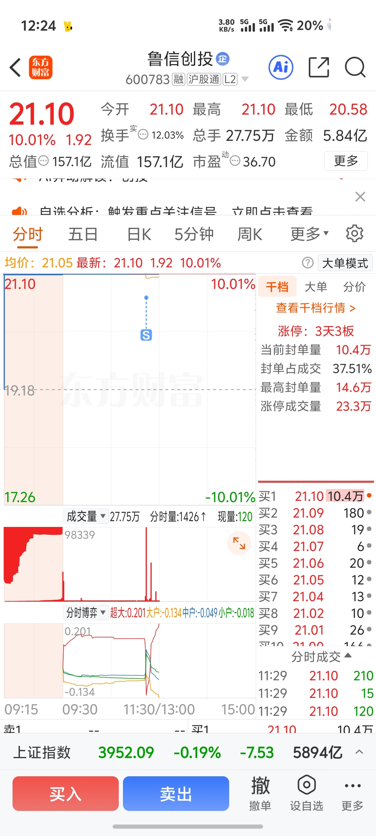 $鲁信创投(SH600783)$ 被洗