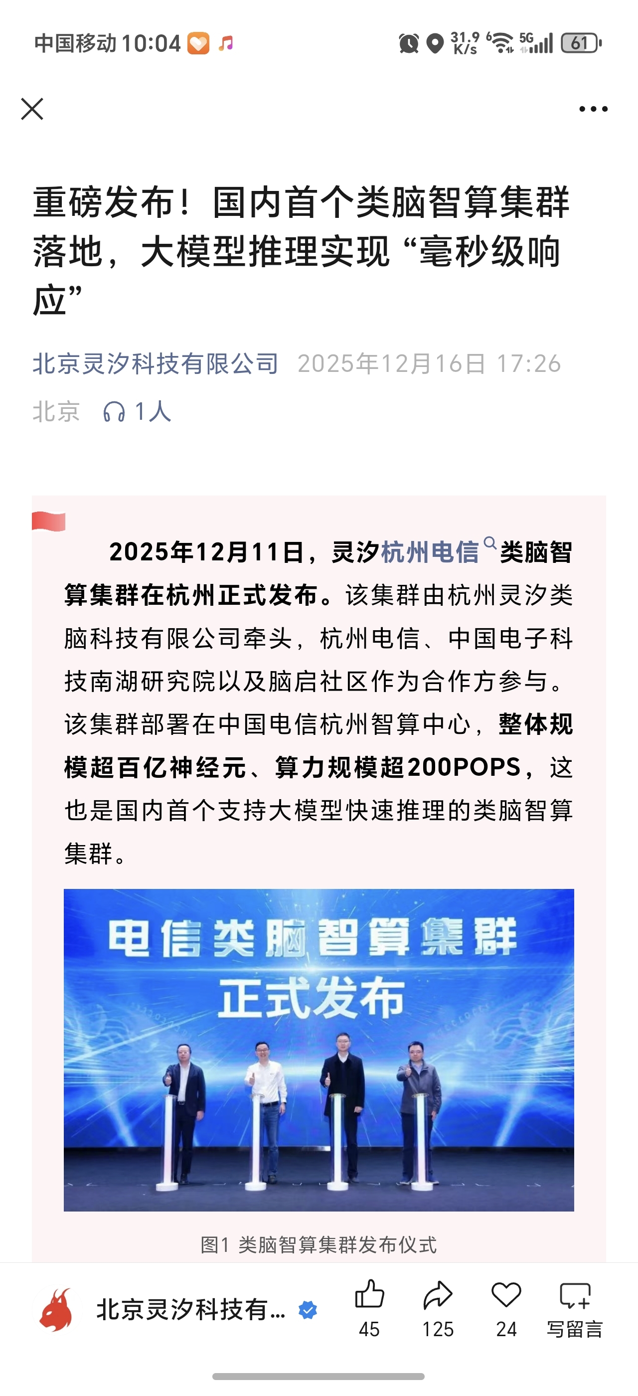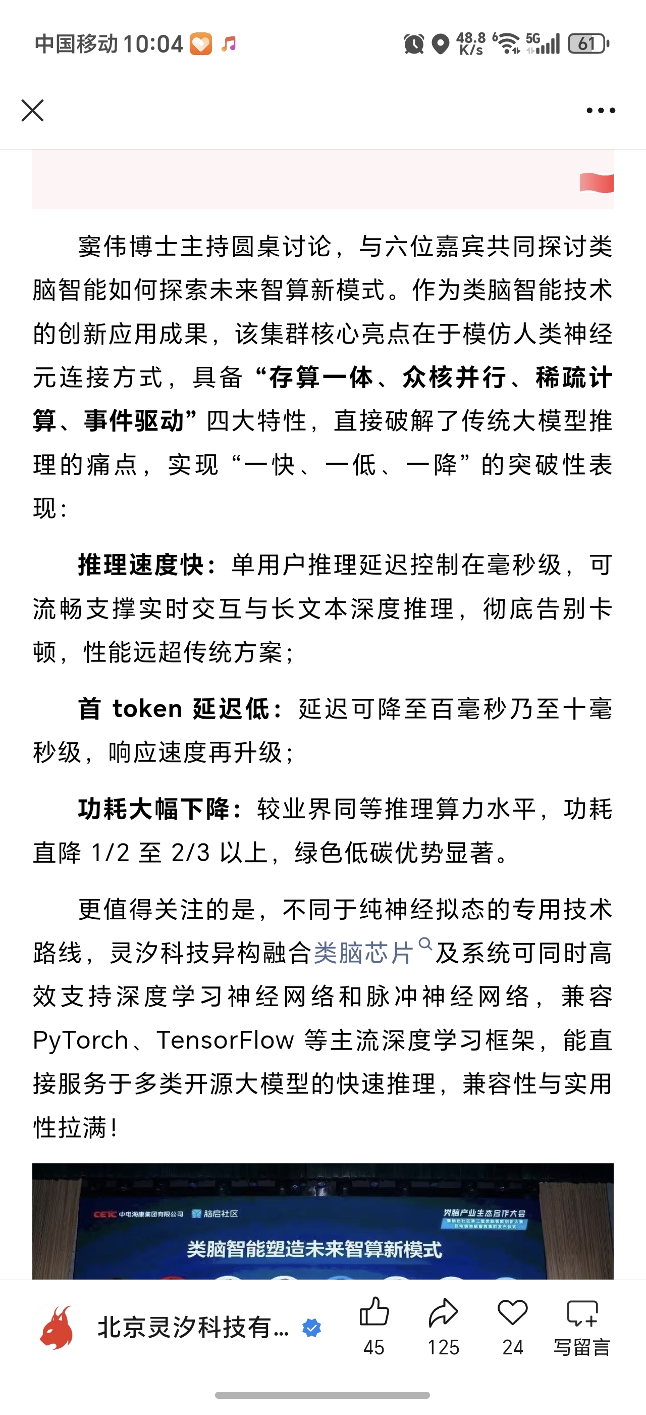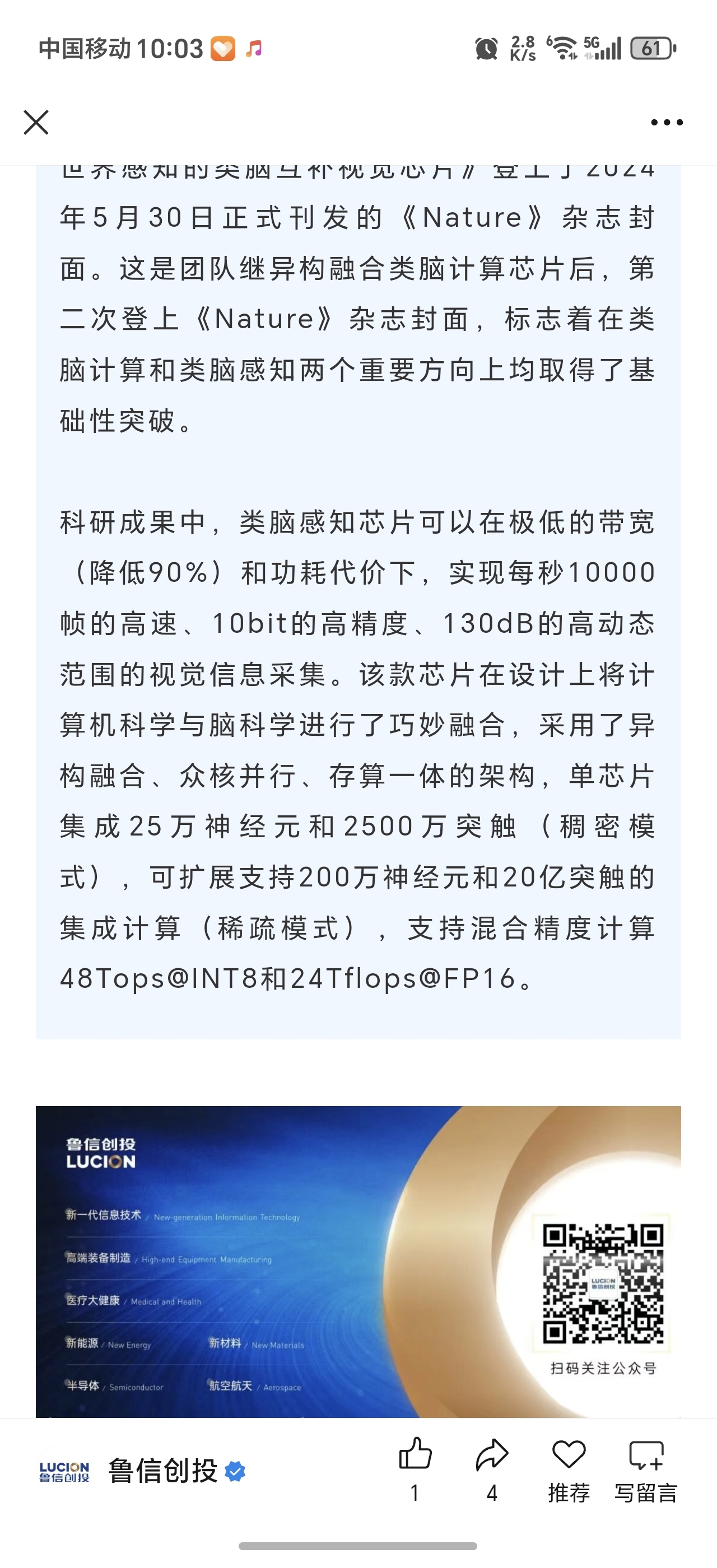 $鲁信创投(SH600783)$ 鲁信创投何止投资了蓝箭航天,他是投资了很多个不差于蓝箭航天的公司,这里就介绍一家成功研发类脑人工智能芯片的硬科技公司叫灵汐科技,国内首家成功研发类脑智算集群中心,开创存算一体AI芯片先河,未来如果发起IPO市值不会低于寒武纪!