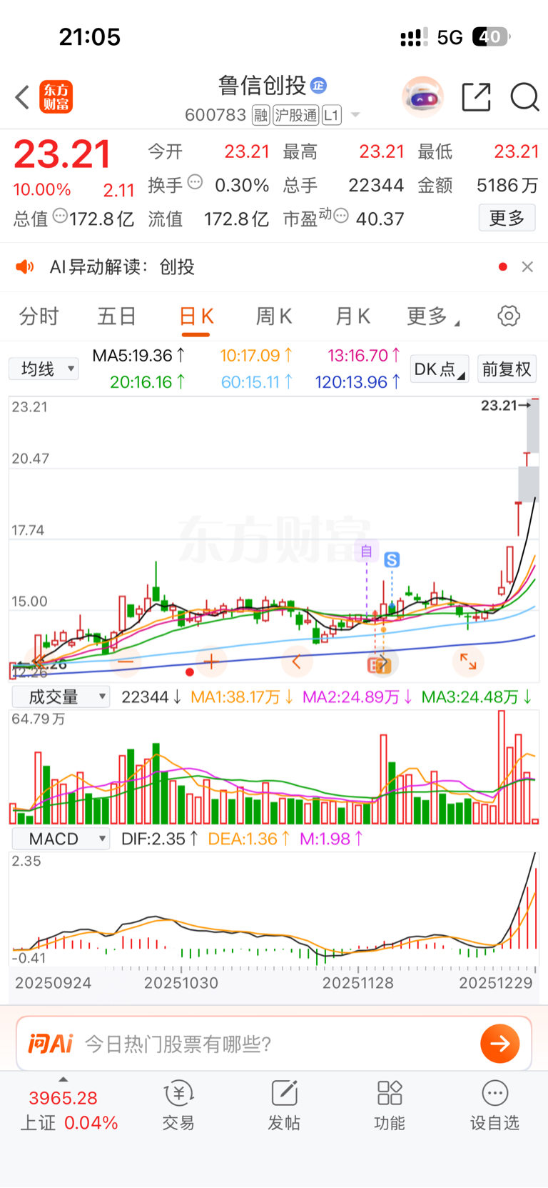 $鲁信创投(SH600783)$ 朱雀回收不了,我就卖了,结果起飞了