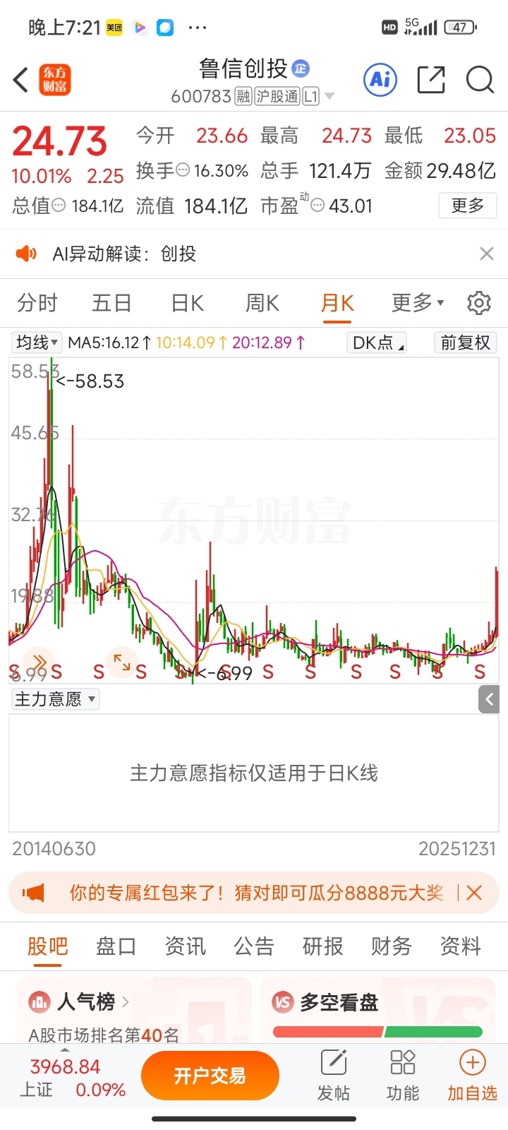 $鲁信创投(SH600783)$ 底部区域股票,剑指60块,60之下都是买点