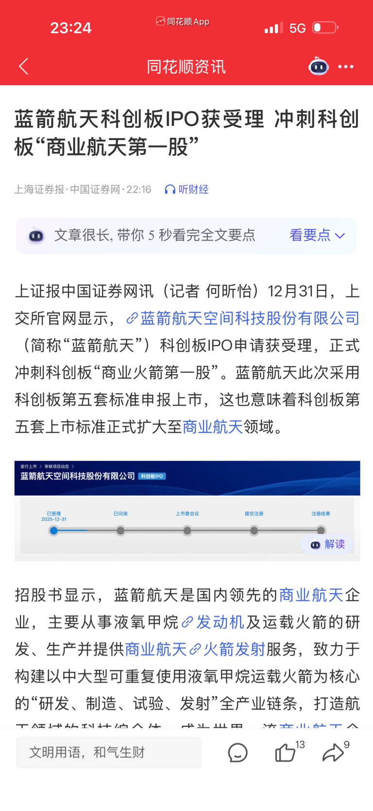 $鲁信创投(SH600783)$ 周一一字了,蓝箭航天ipo