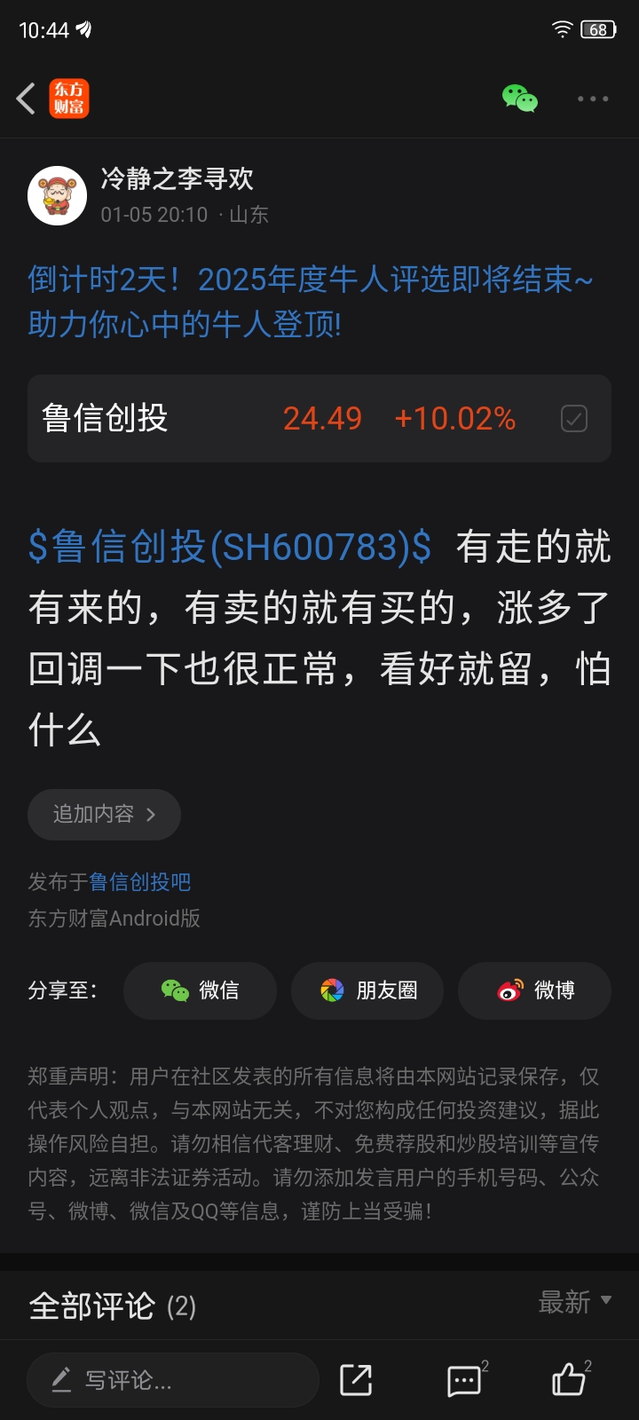 温馨提示: 1.根据《证券法》规定,禁止编造、传播虚假信息或者误导性信息,扰乱证券市场;2.用户在本社区发表的所有资料、言论等仅代表个人观点,与本网站立场无关,不对您构成任何投资建议。用户应基于自己的独立判断,自行决定证券投资并承担相应风险。《东方财富社区管理规定》